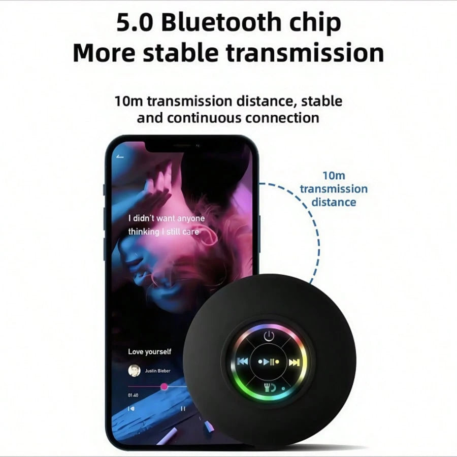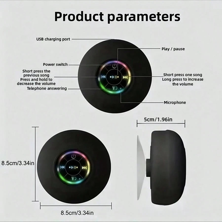 Enceinte Bluetooth LED pour salle de bain, sans fil, chargement USB, 400 mAh, bouton de commande, grandes ventouses, 1/2 haut-parleur de douche portable avec microphone intégré et commande vocale.