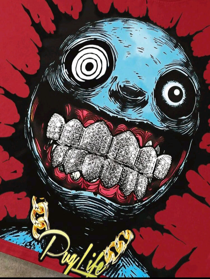 Manfinity Streetrush Men's Summer Cartoon Print Crew Neck Short Sleeve Casual Versatile T-Shirt Mens Horror T Shirts