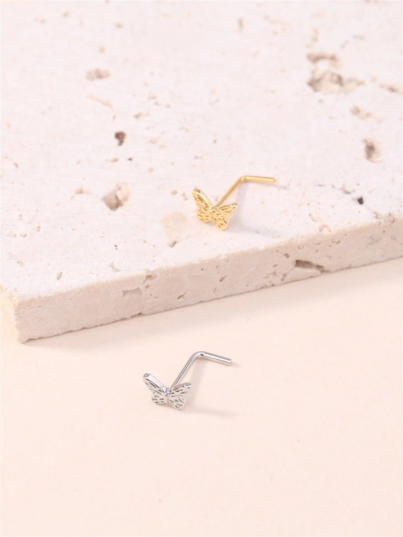 1 anneau de nez en forme de papillon pour femme et fille, joli bijou de nez doré en forme de L