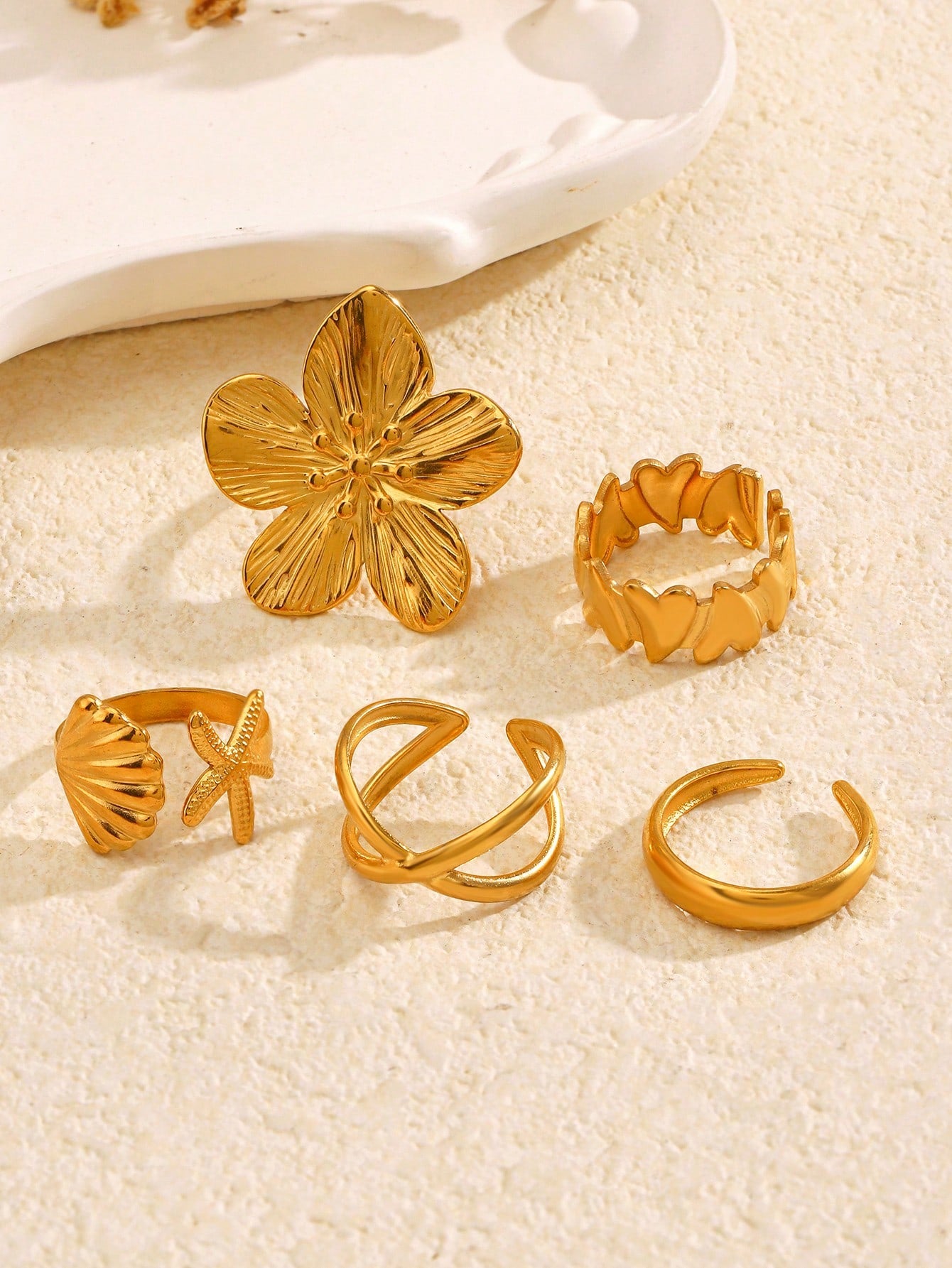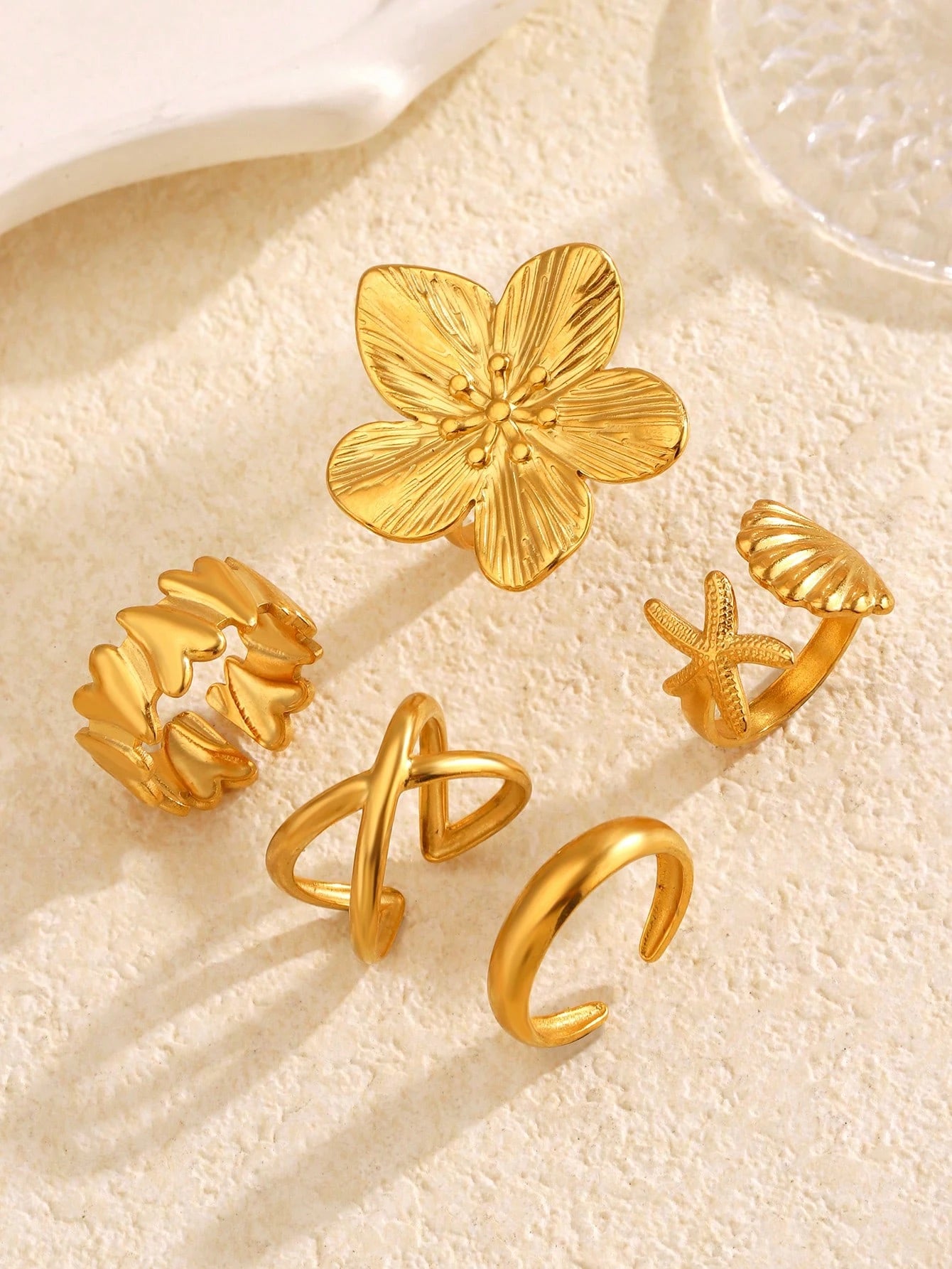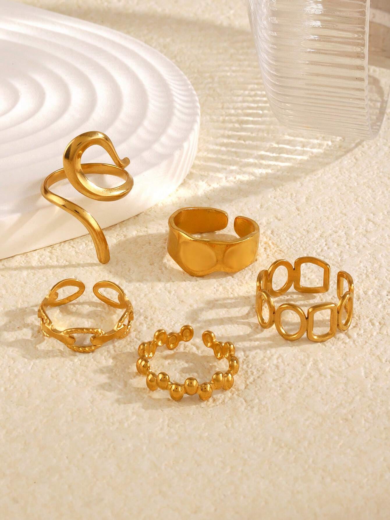 Lot de 5 bagues ouvertes géométriques tendance en acier inoxydable plaqué or 18 carats pour femme