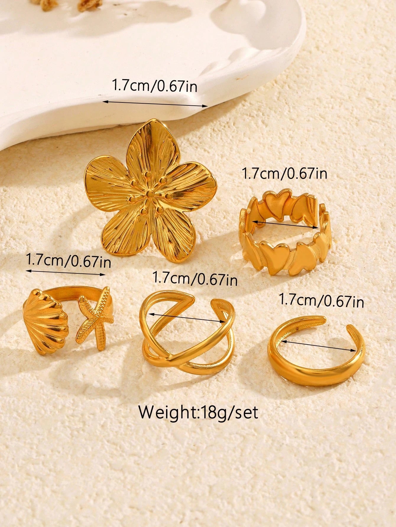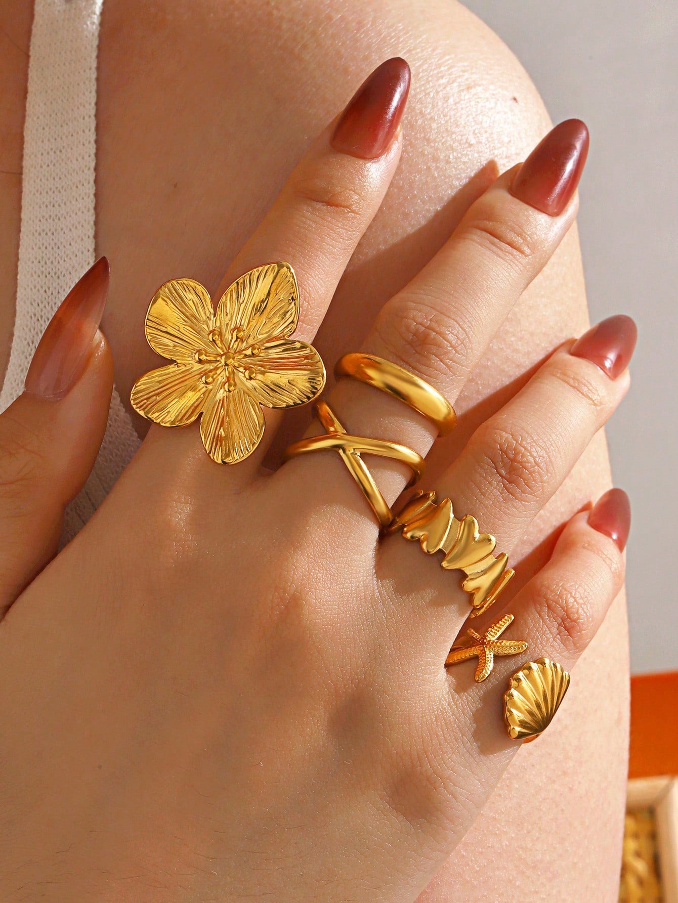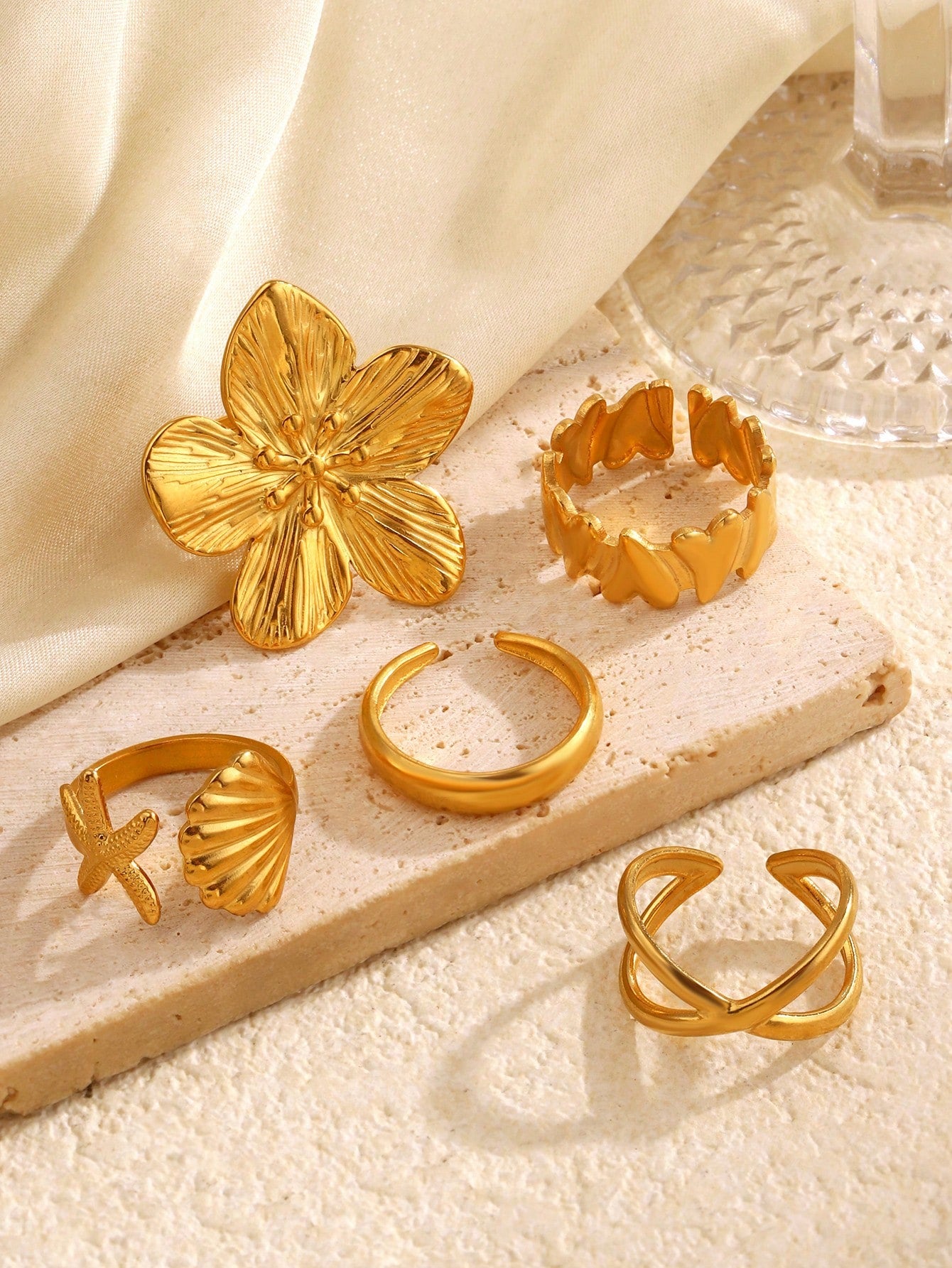 Lot de 5 bagues ouvertes géométriques tendance en acier inoxydable plaqué or 18 carats pour femme