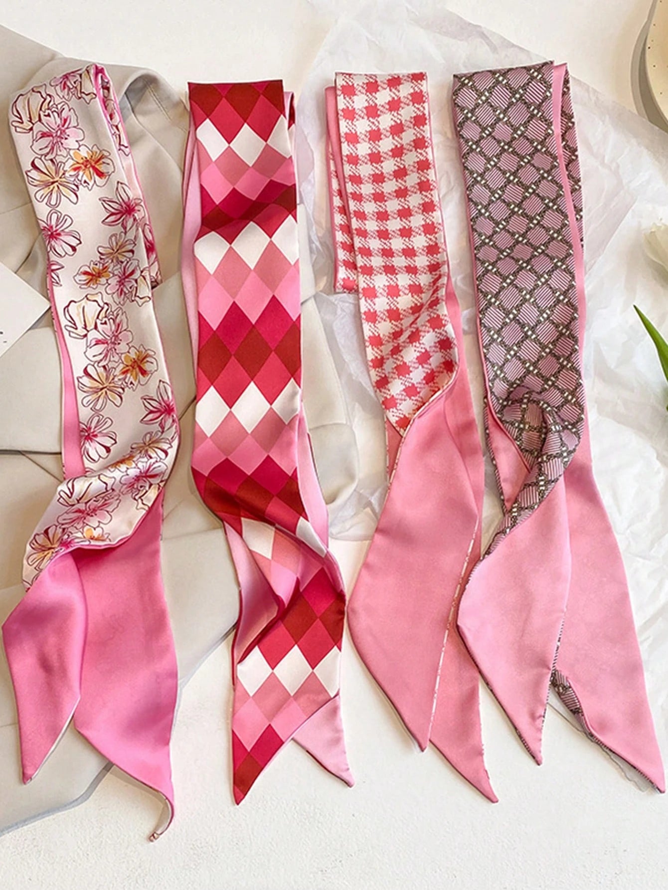 Lot de 4 chouchous à imprimé floral bleu, polyvalents pour les vacances et le quotidien, élégants, turbans, bandeau anti-transpiration, accessoires scolaires, universitaires, bandeaux