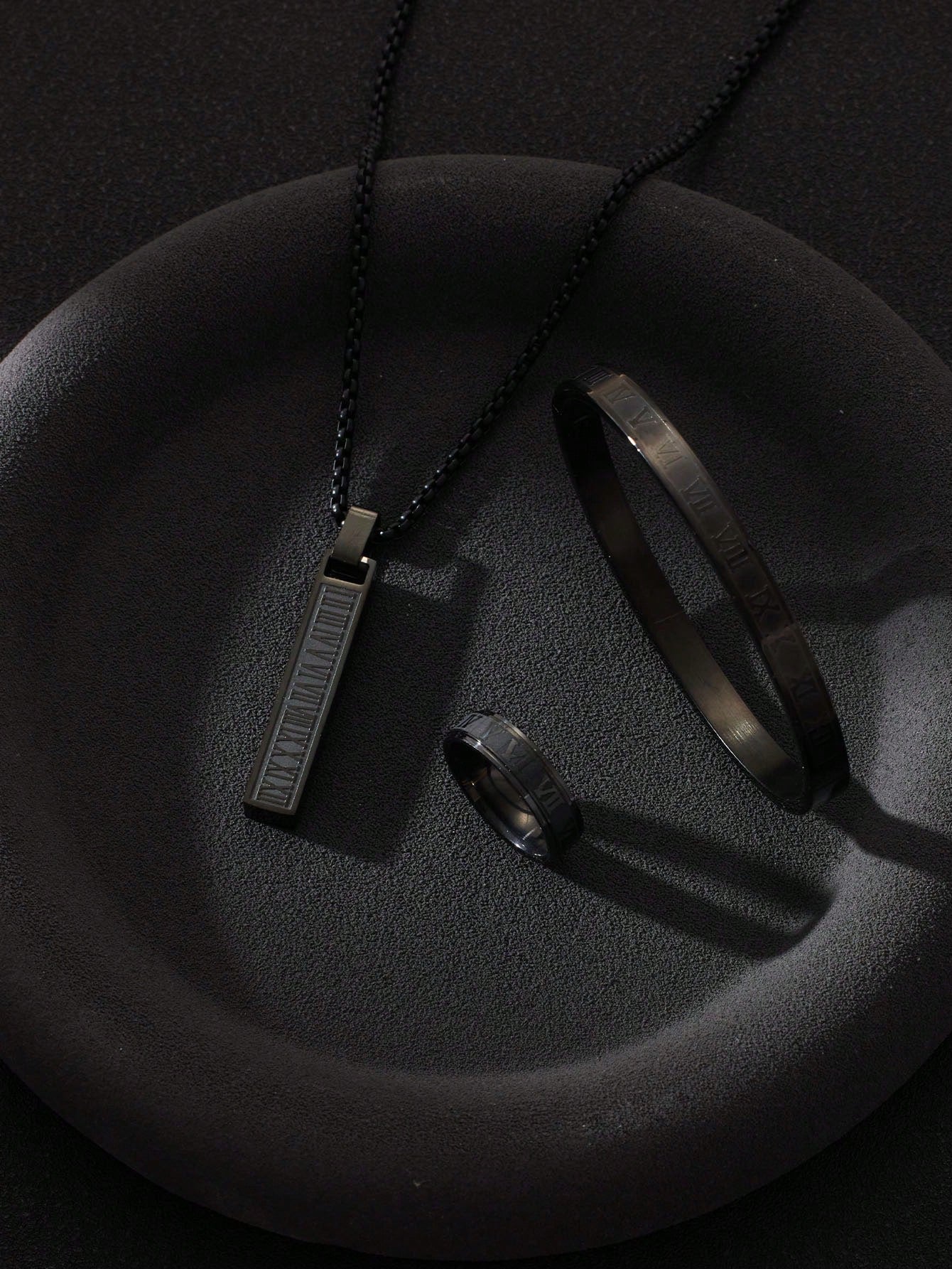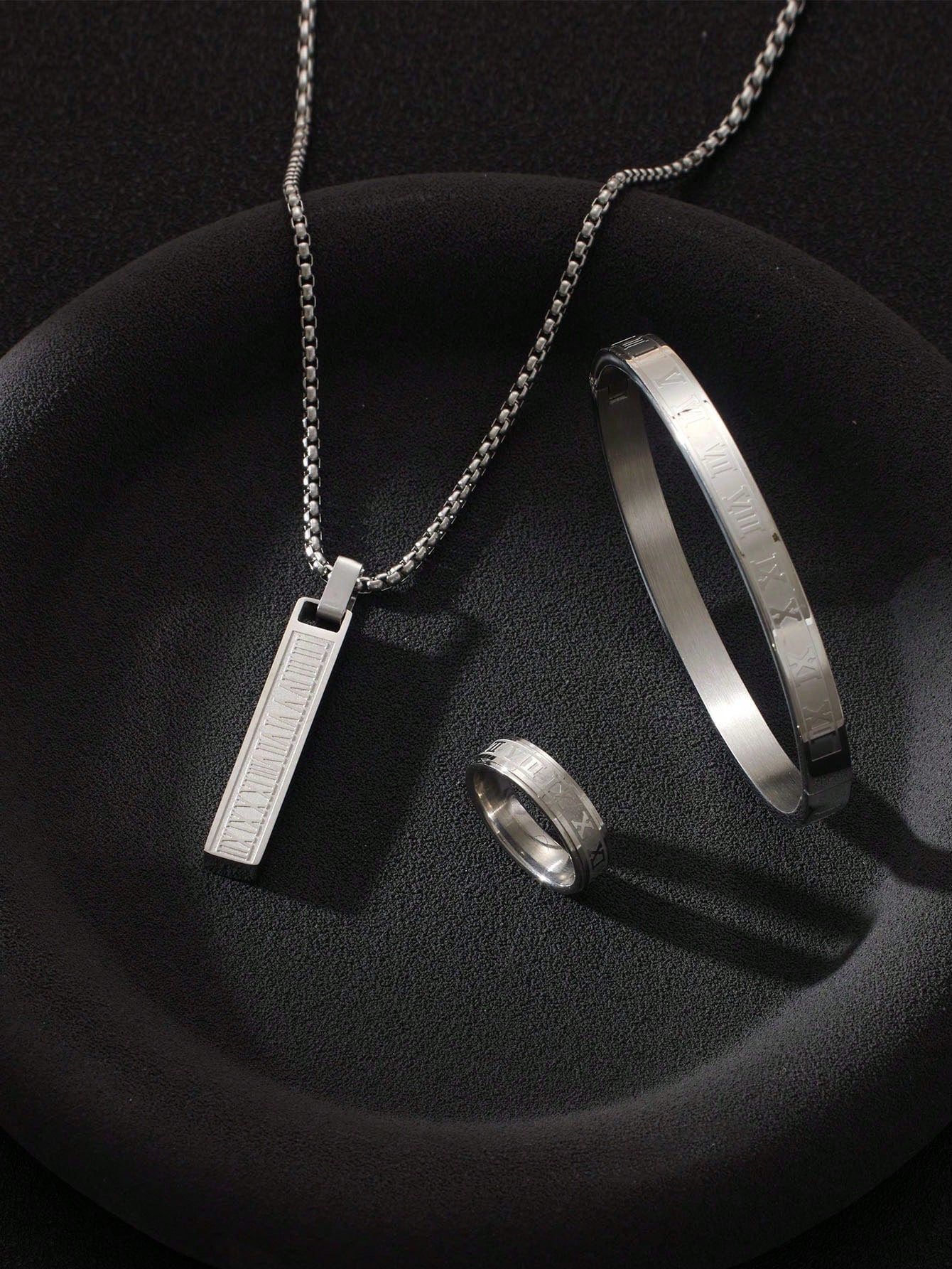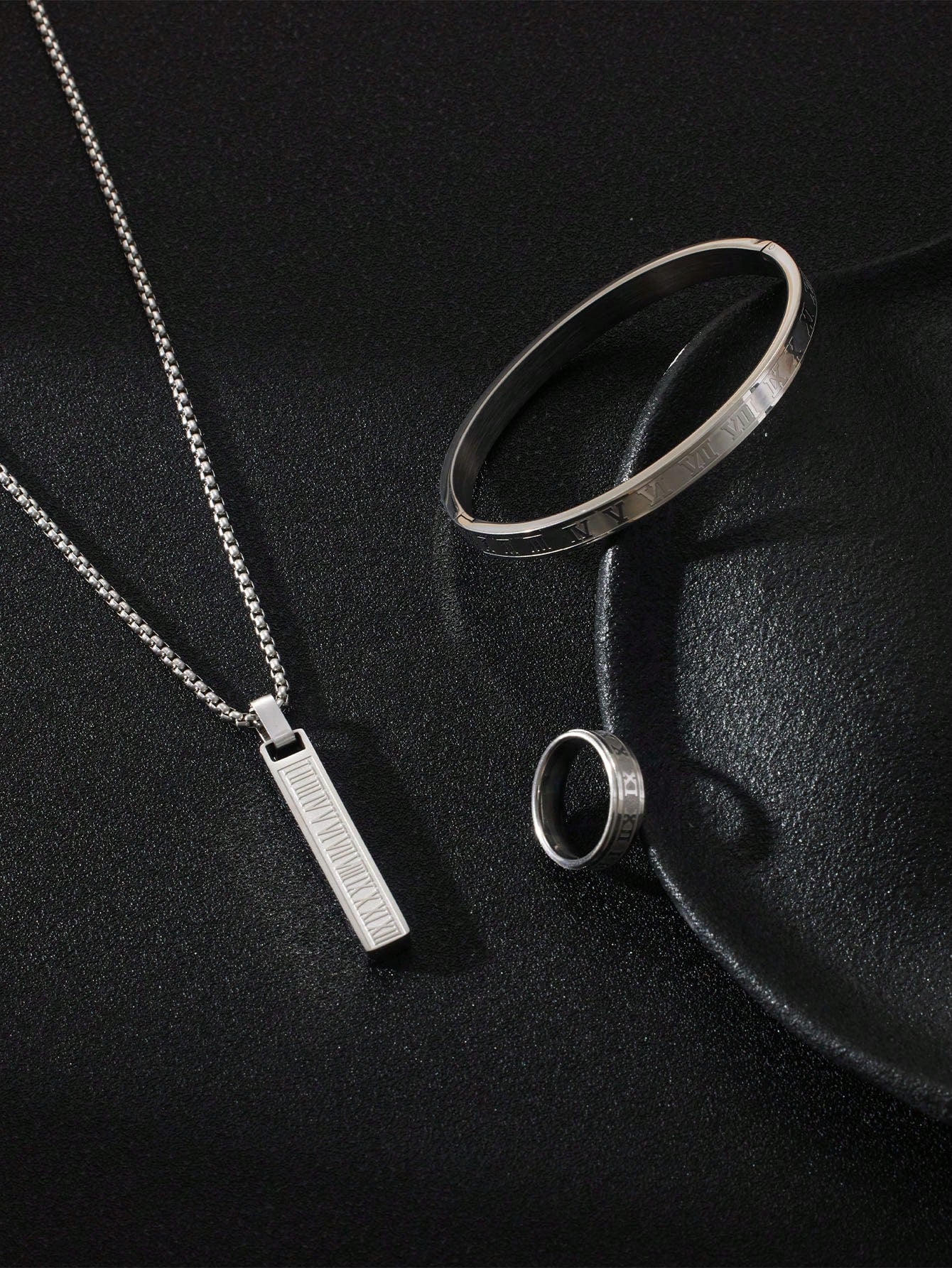 Lot de 3 bracelets, bagues et colliers en acier inoxydable avec chiffres romains, pour un usage quotidien, idéal pour Noël, le Nouvel An ou la Saint-Valentin.