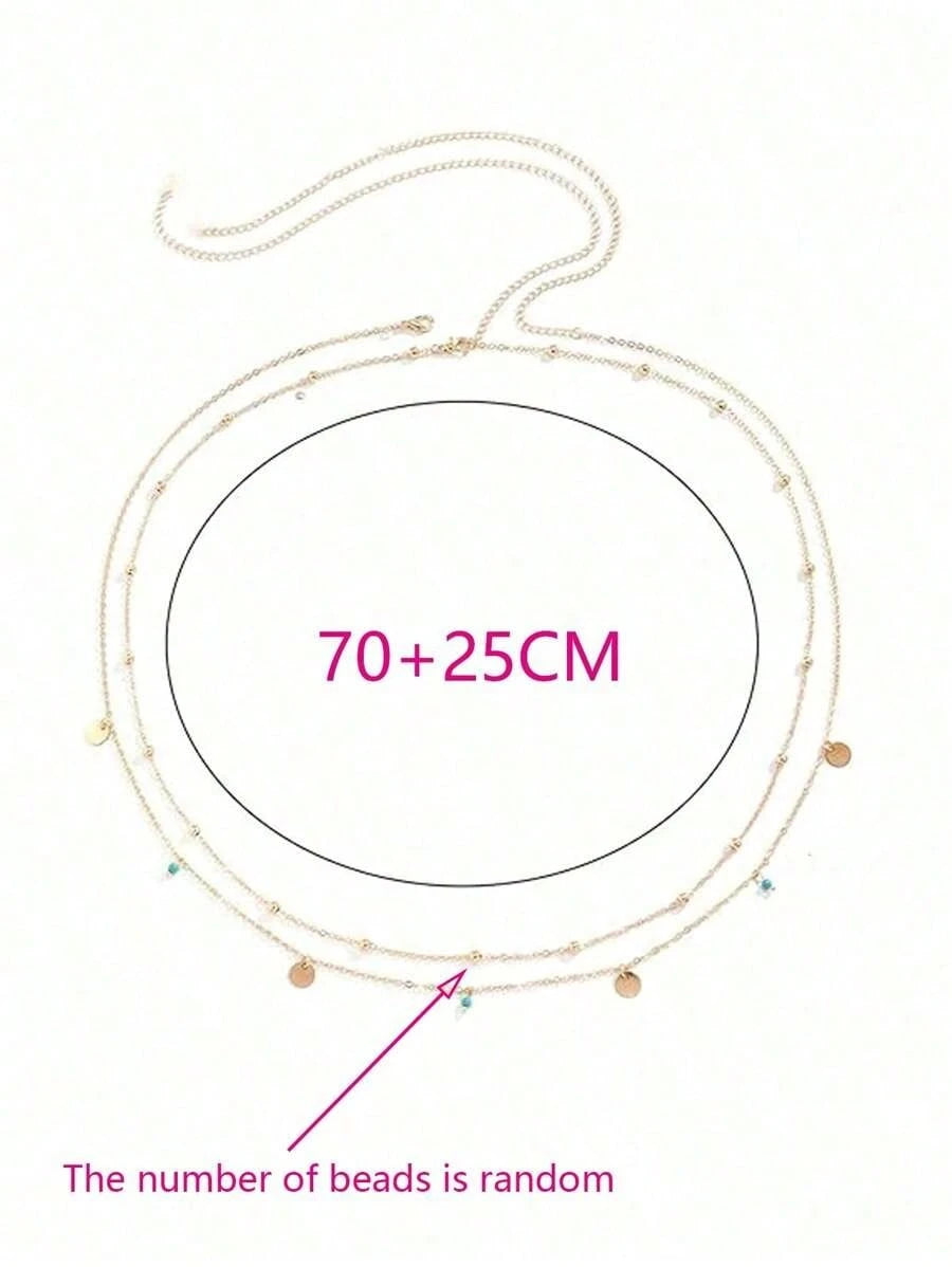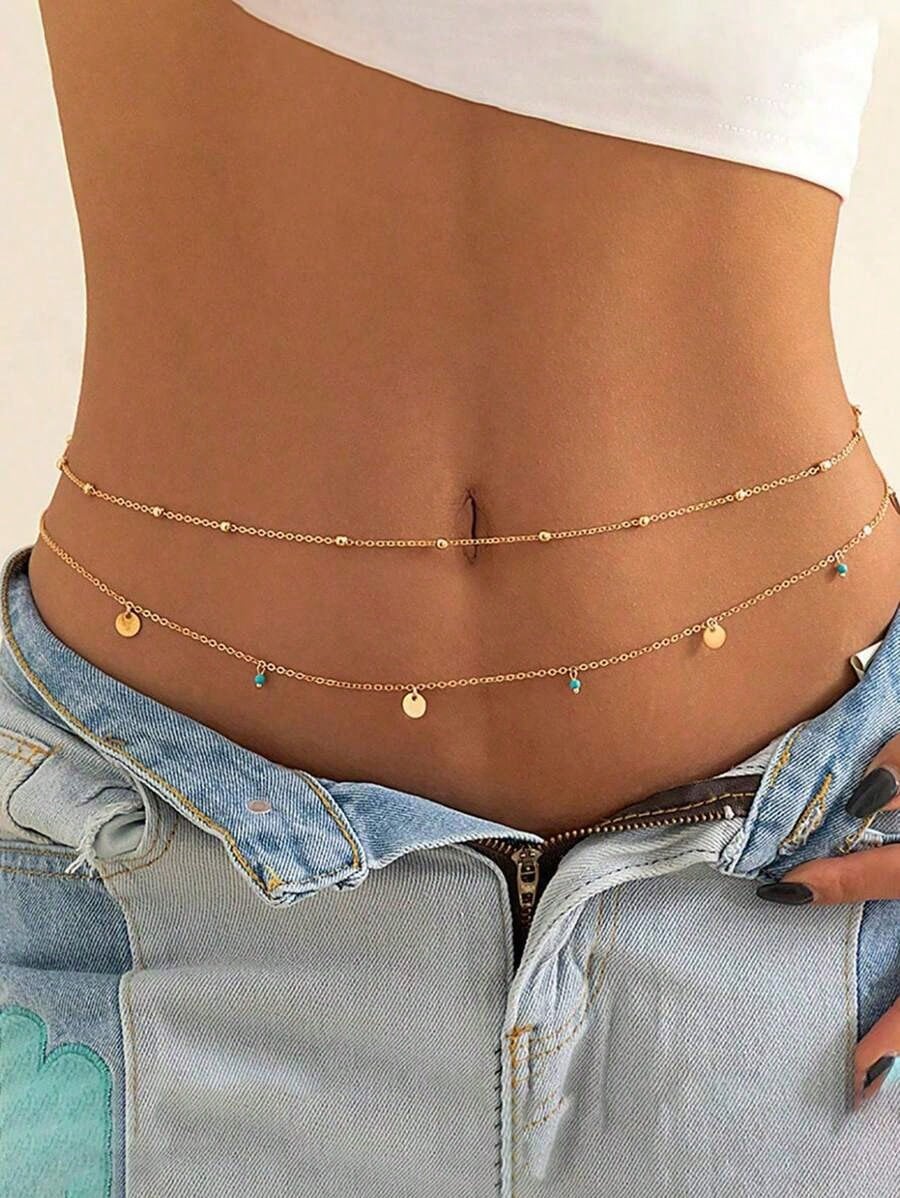 Chaîne de taille ronde turquoise d'été, chaîne de taille et de ventre multicouche en métal pour bikini, bijoux pour femme, chaîne de corps sexy en perles de plage