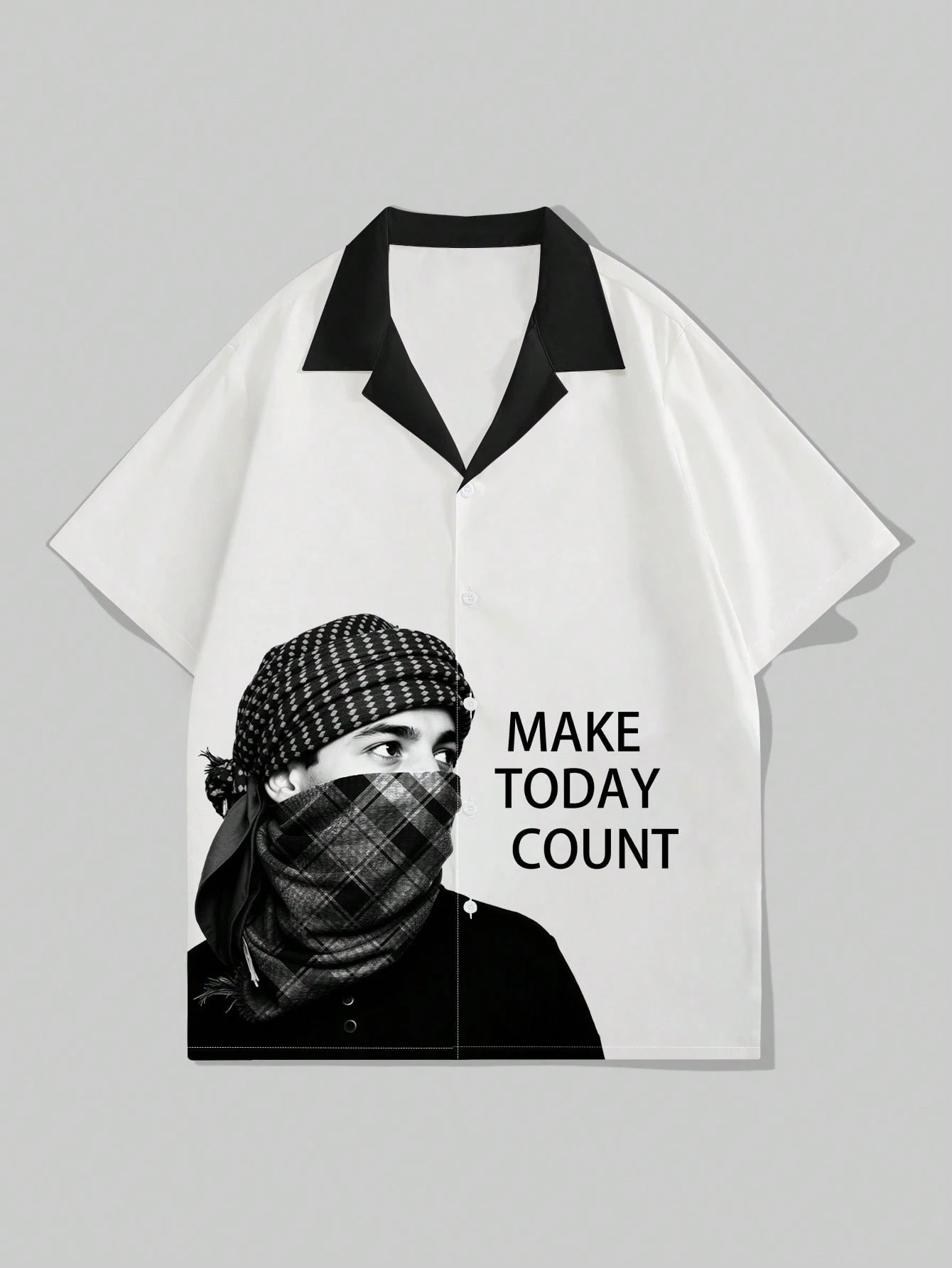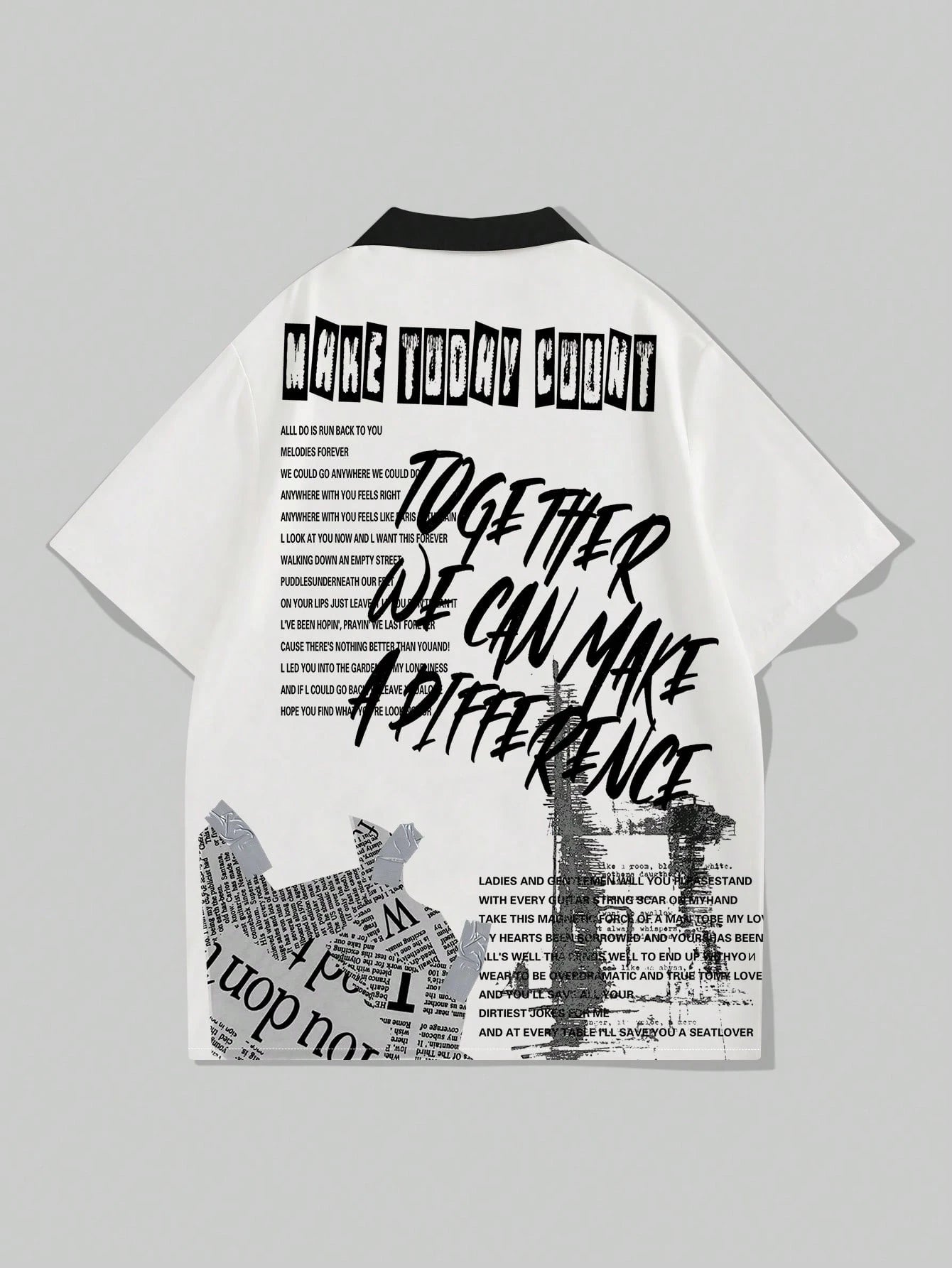 Chemise décontractée à manches courtes pour homme Manfinity EMRG, col contrasté, imprimé lettres