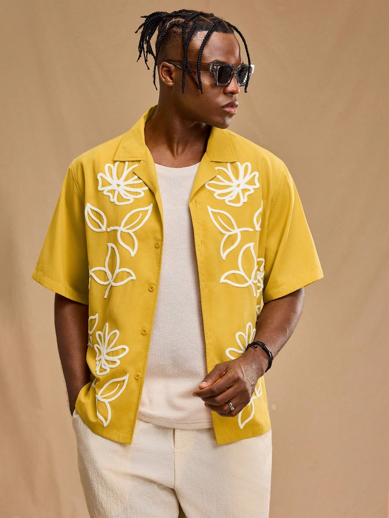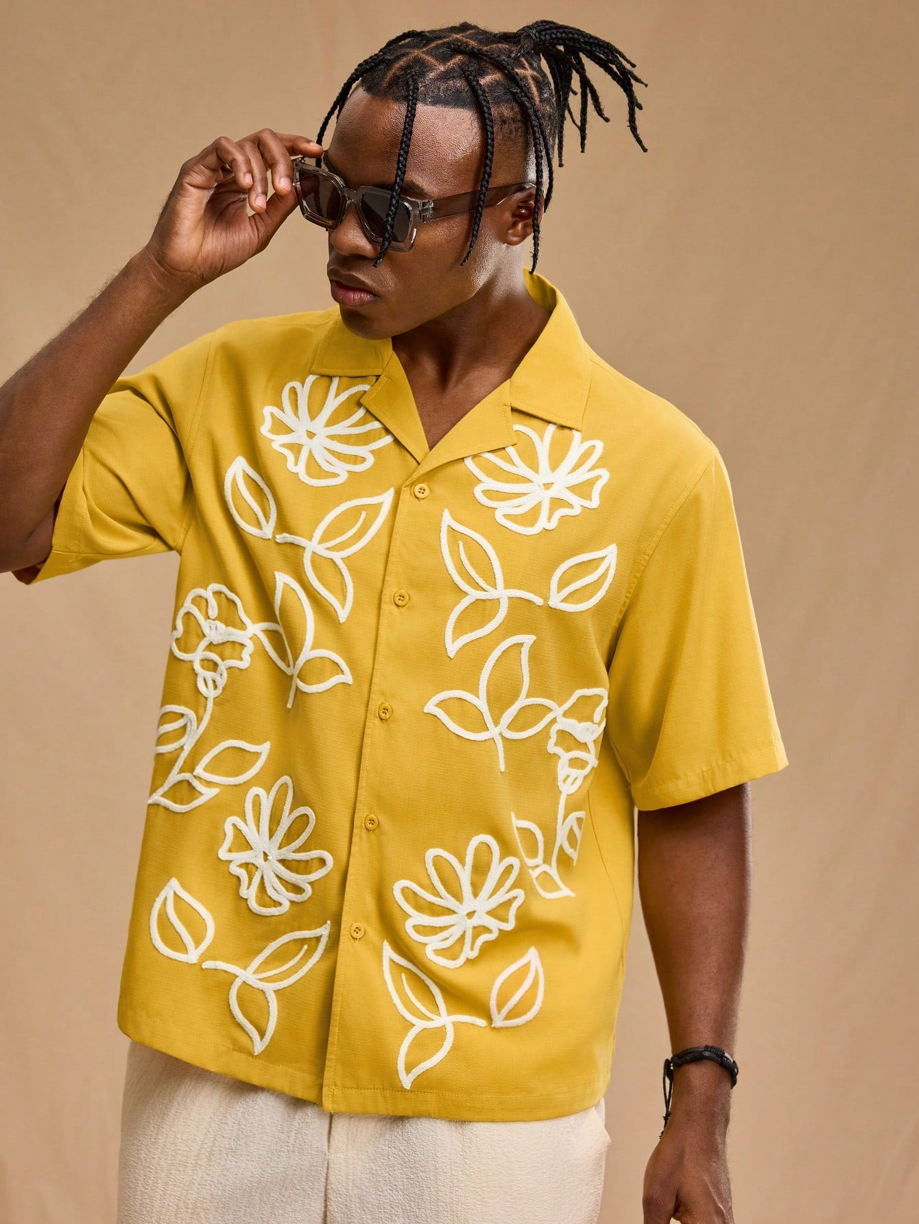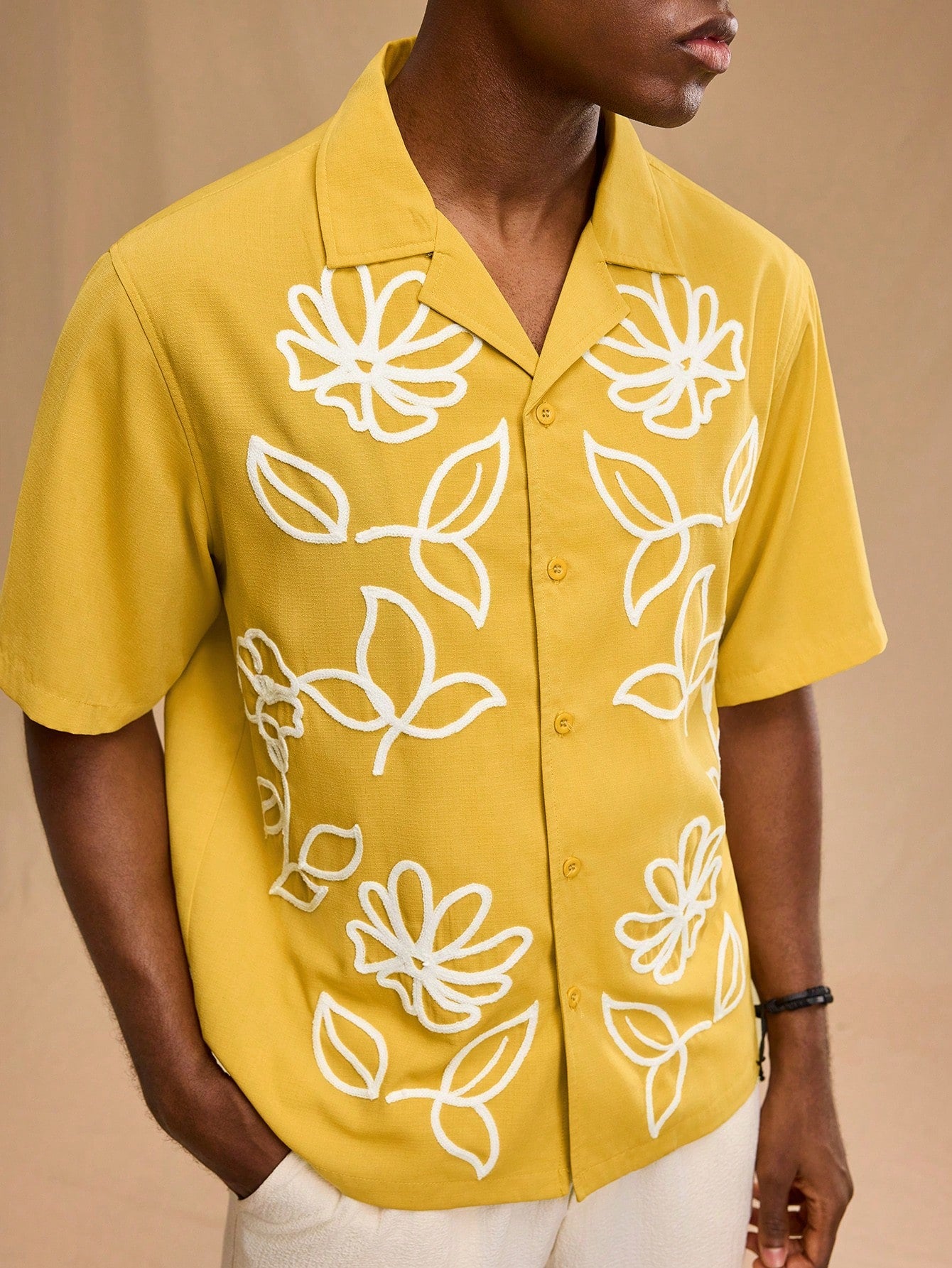 Chemise ample à fleurs brodées style vacances Forever 21 pour homme, idéale pour le printemps et l'été