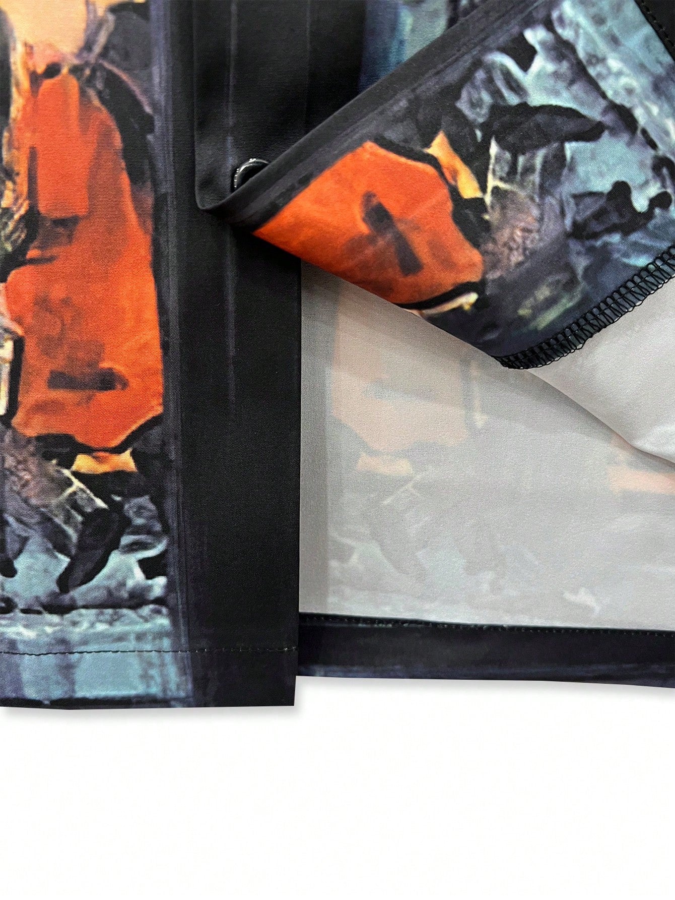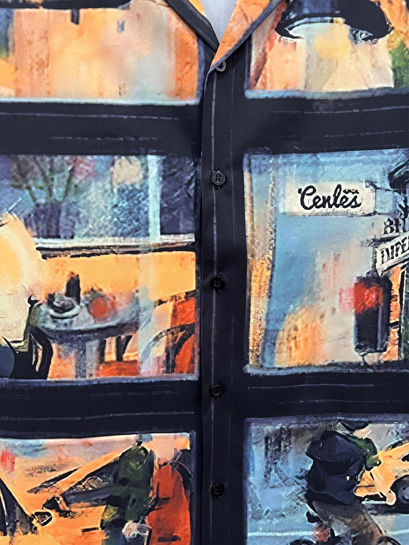 Chemise imprimée extensible 4 directions 140 g, motif vélo, lampadaire, fenêtre panoramique, ambiance coucher de