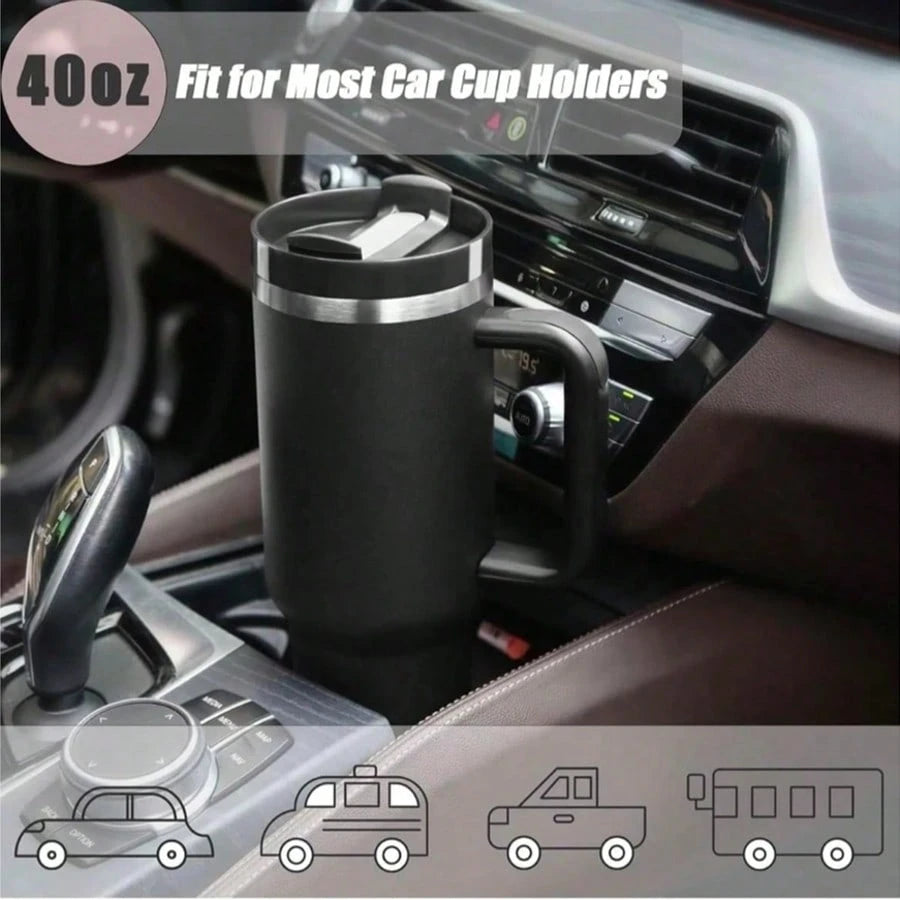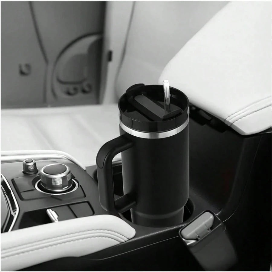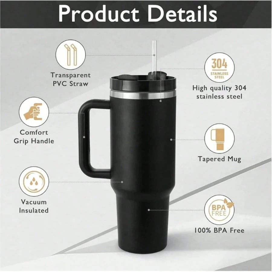 Gobelet isotherme H2.0 de 113 cl, en acier inoxydable, avec couvercle et paille, pour eau, thé glacé, café, smoothies, etc. Gourde isotherme réutilisable à double paroi de 113 cl, en acier inoxydable, avec poignée, pour activités de plein air et camping.