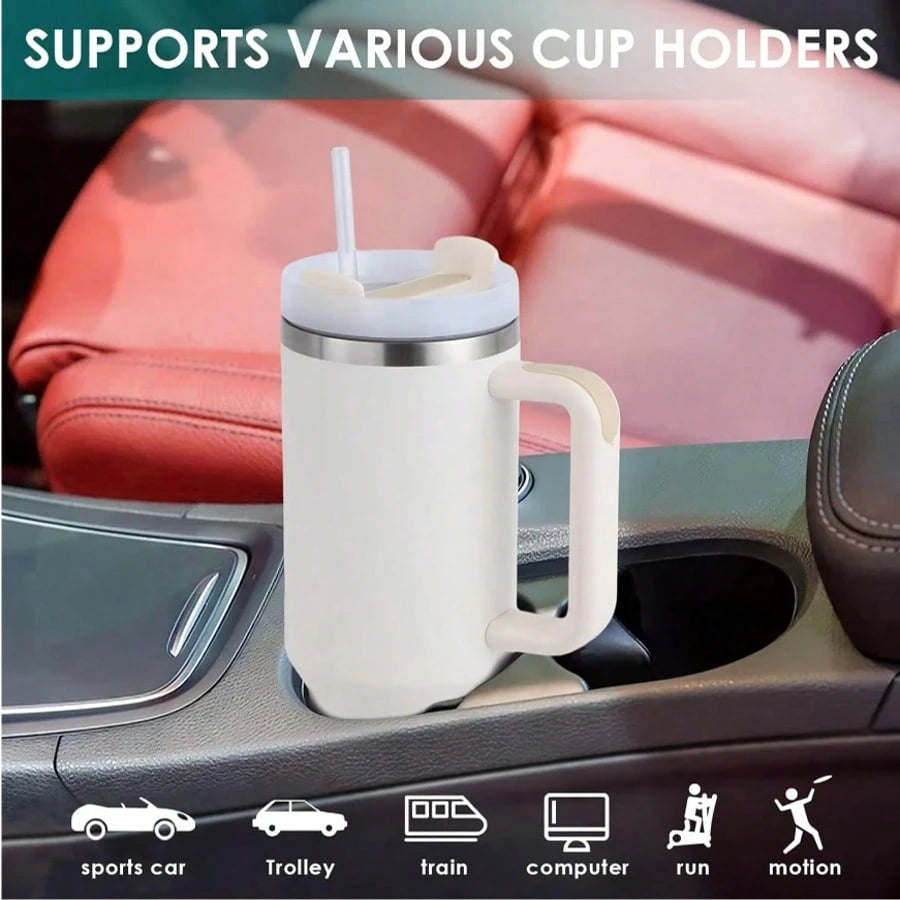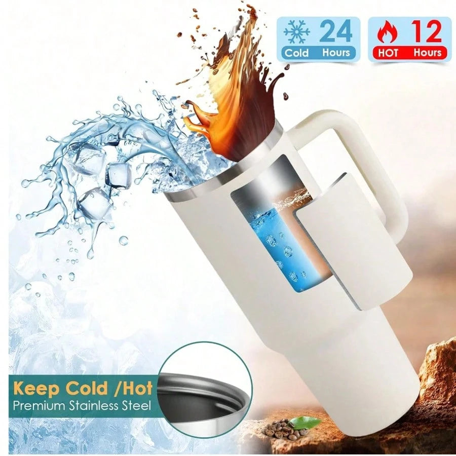 Gobelet isotherme H2.0 de 113 cl, en acier inoxydable, avec couvercle et paille, pour eau, thé glacé, café, smoothies, etc. Gourde isotherme réutilisable à double paroi de 113 cl, en acier inoxydable, avec poignée, pour activités de plein air et camping.