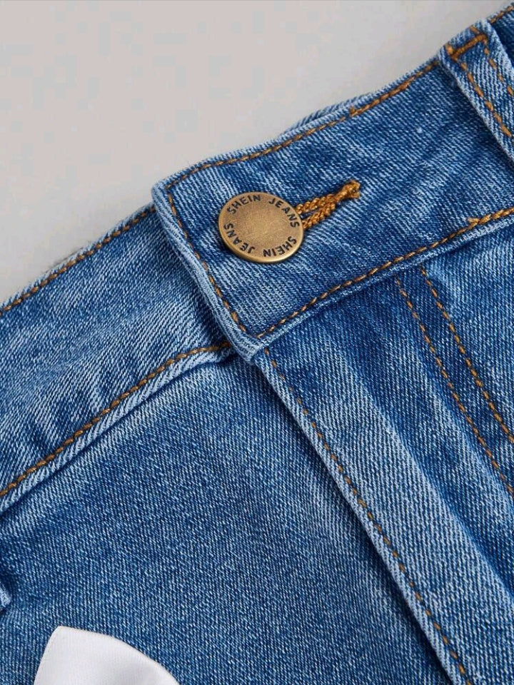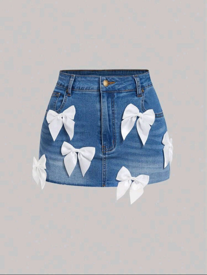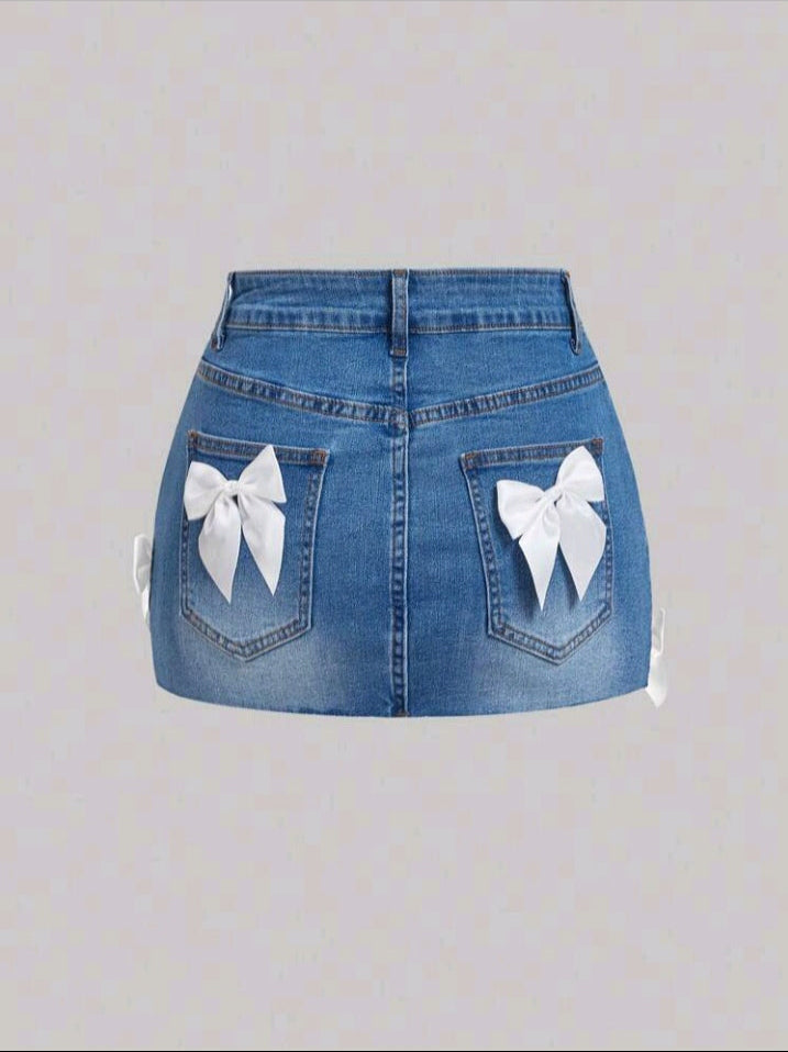 SHEIN MOD Women's Bow Decor Pocket Zipper Closure Sexy Denim Mini Skirt