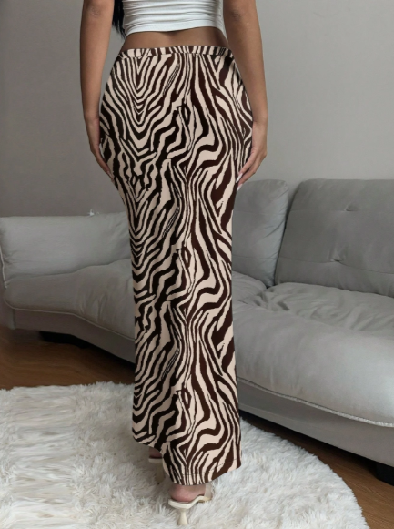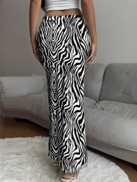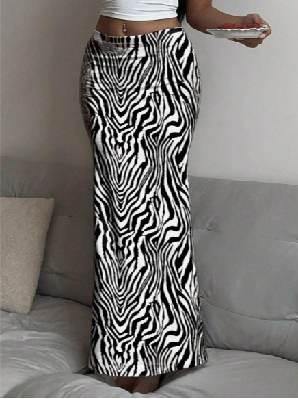 Jupe longue en maille taille basse à imprimé zèbre SHEIN SXY pour femme, idéale pour le printemps, l'été et l'automne, idéale pour sortir. Robe chic