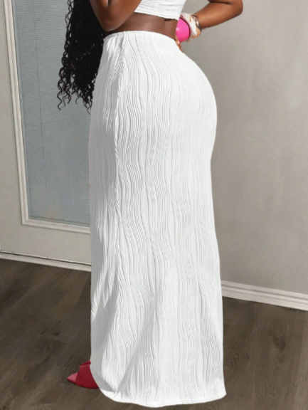 Jupe élégante en tissu texturé à taille extensible, style queue de sirène, longueur genou, idéale pour les vacances à la plage en été.