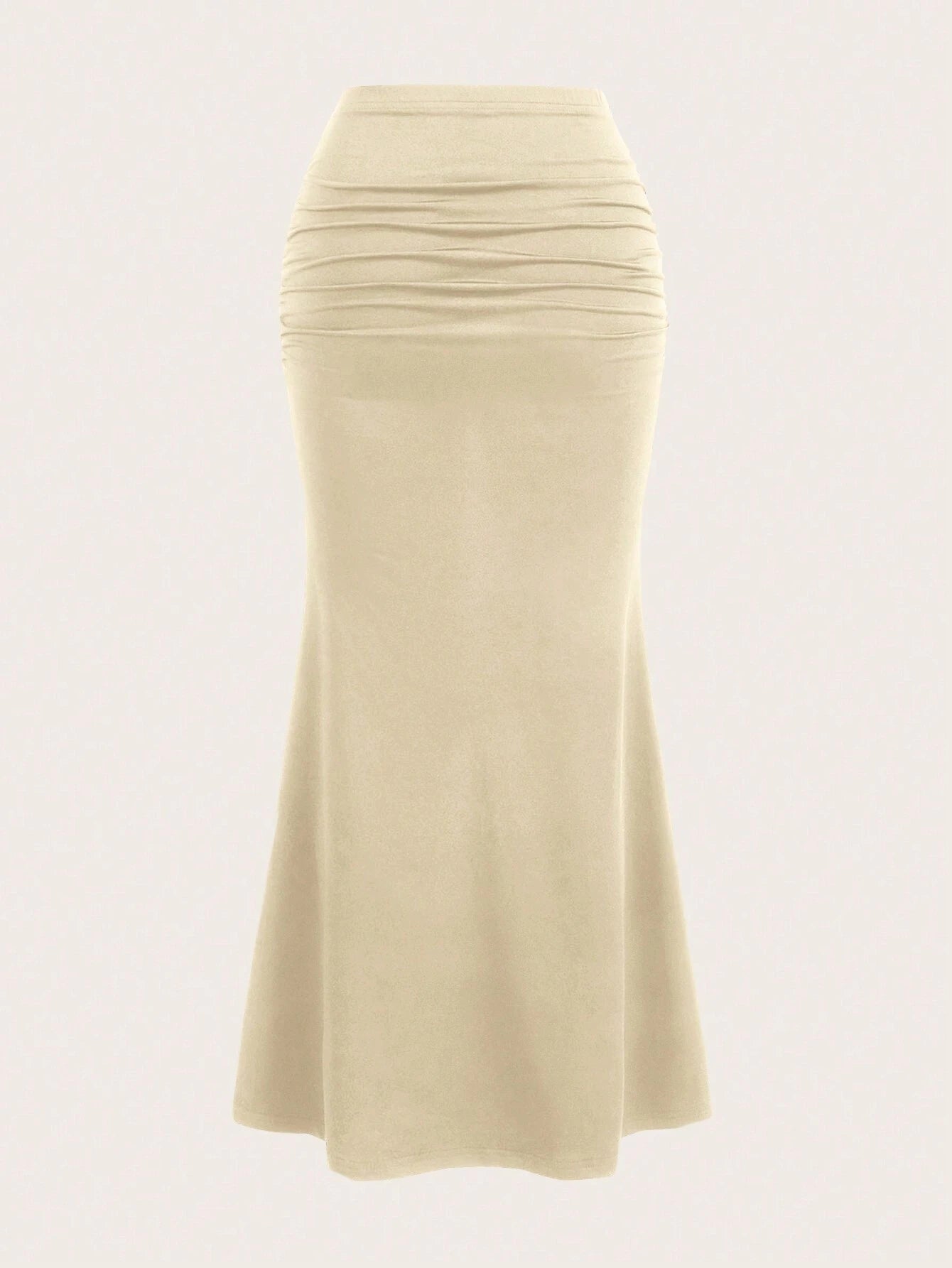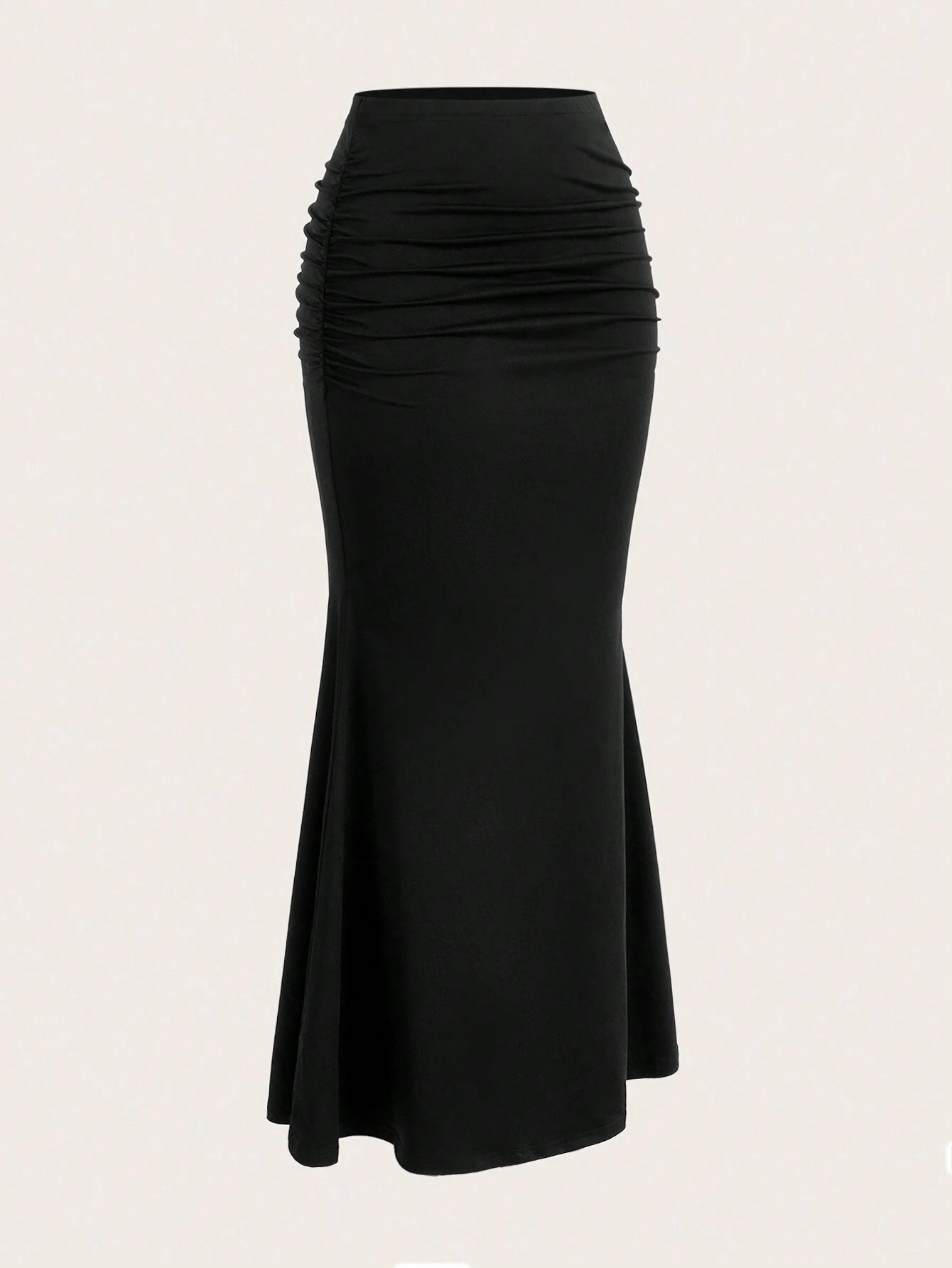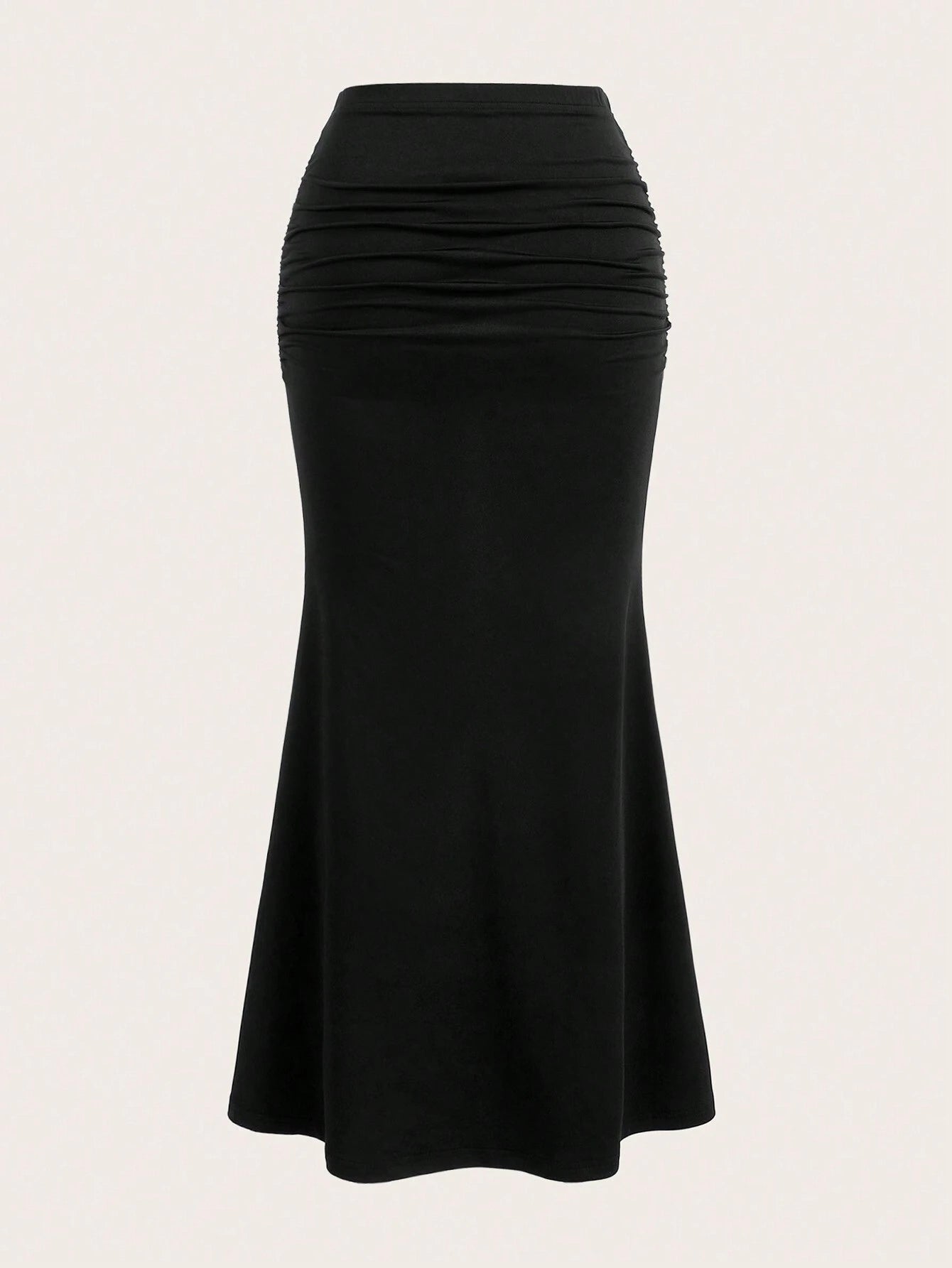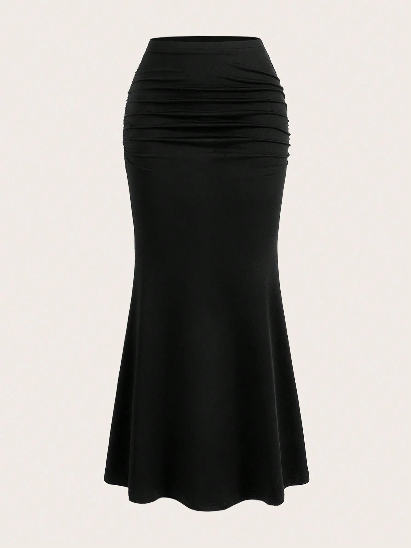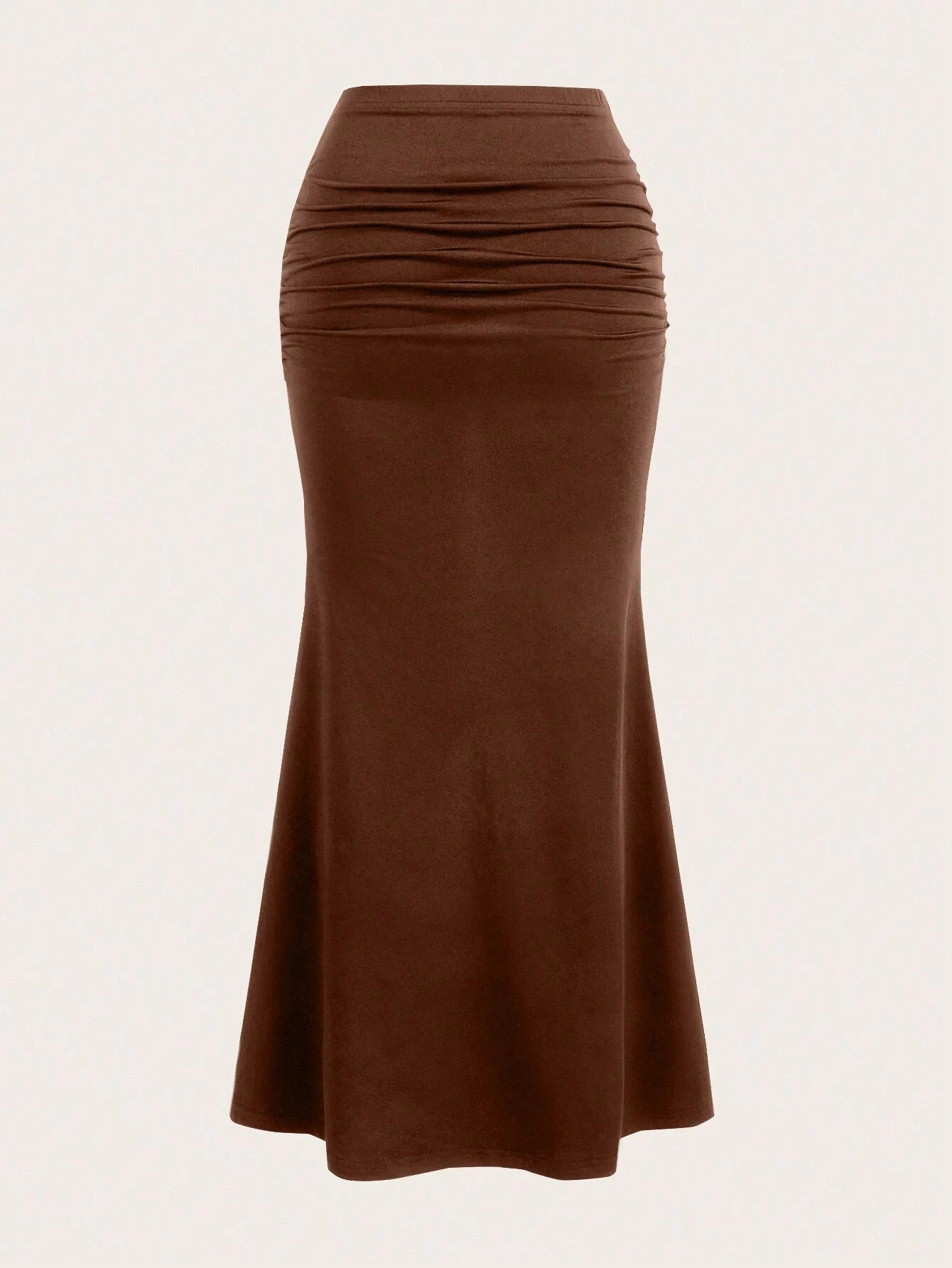 Jupe longue plissée en queue de poisson de couleur unie pour femme