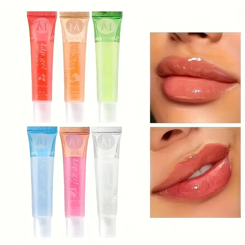 Gloss à Lèvres Hydratant aux Fraises Transparents en 6 Couleurs, Anti-Sécheresse des Lèvres, Résistant à l'Eau et Longue Tenue, Maquillage Essentiel pour les Voyages Extérieurs, Cadeau de Fête des Mères