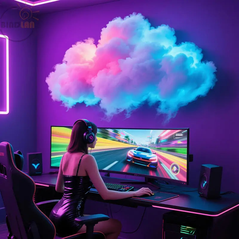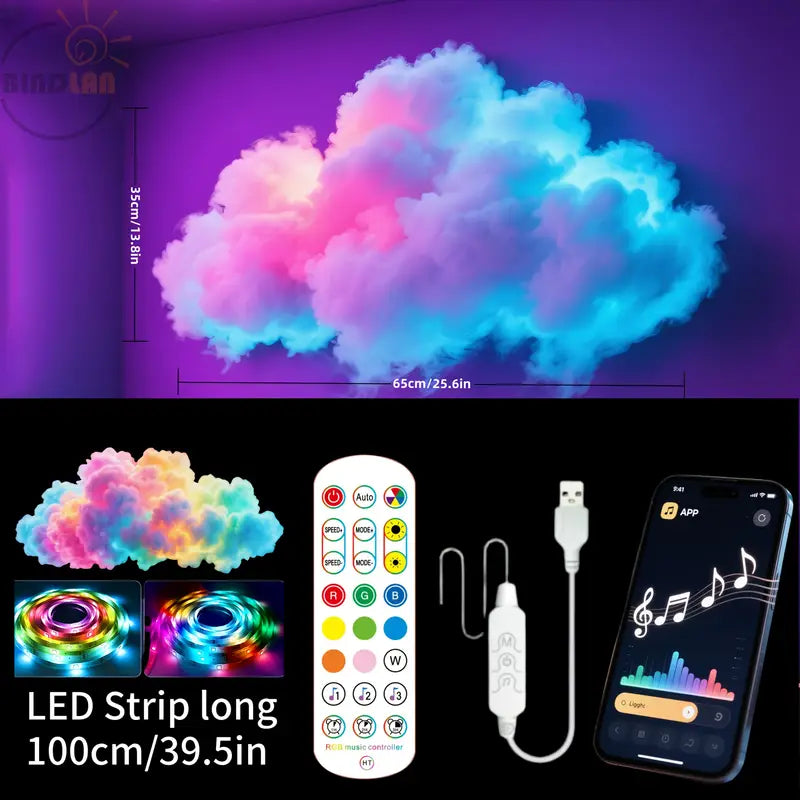 Kit de lumière de nuage de foudre 3D BINDLAN - Alimenté par USB, contrôlé à distance, synchronisation de musique, fonction d'application, capteur infrarouge, décoration autonome pour chambre à coucher, configuration de jeu avec un design nuageux vibrant, décoration de salle de jeu | Configuration de jeu moderne | Lumières alimentées par USB, décorations de salle de jeu