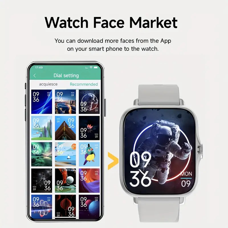 Nouveau Smartwatch à grand écran de 1.83 pouces, adapté aux téléphones for iphone/Android, prend en charge les appels vocaux HD, plusieurs modes sportifs, adapté au sport, détection du sommeil en extérieur, port quotidien, plusieurs interfaces à choisir, multifonction - Contrôle de la musique et de la caméra, suivi de la santé, lecture des messages push, bracelet intelligent adapté aux hommes et aux femmes
