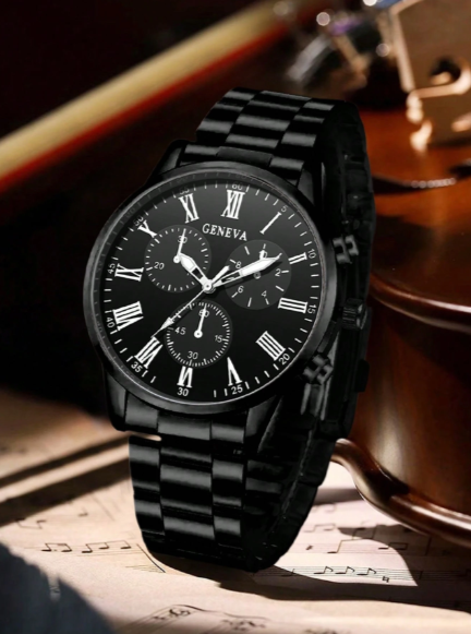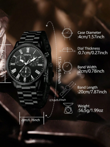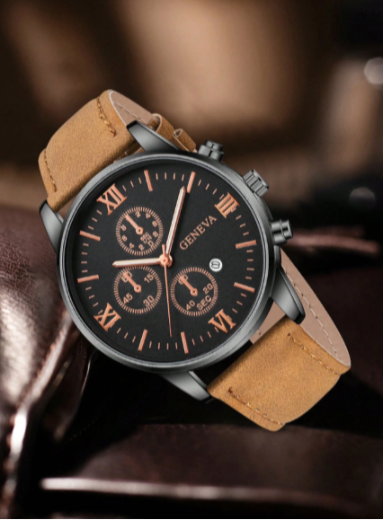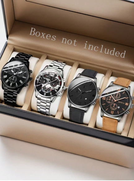 Ensemble de 4 montres à quartz pour homme, style décontracté et professionnel, avec fonction calendrier, cadran circulaire, pour un usage quotidien ou comme cadeau de vacances