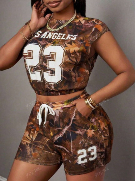 Summer Outfits For Women Street Tow Piece Set Maple Leaf Letter Print O Neck Short Sleeve Tops Match Shorts Casual Sets