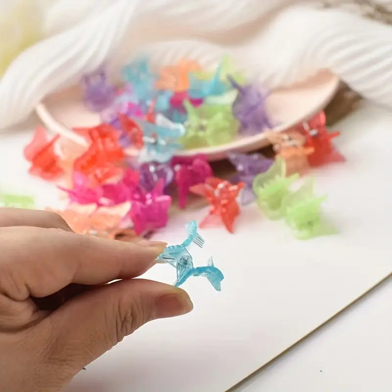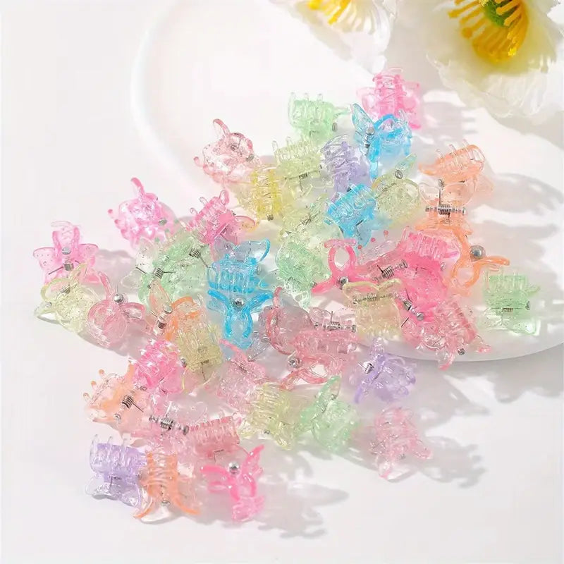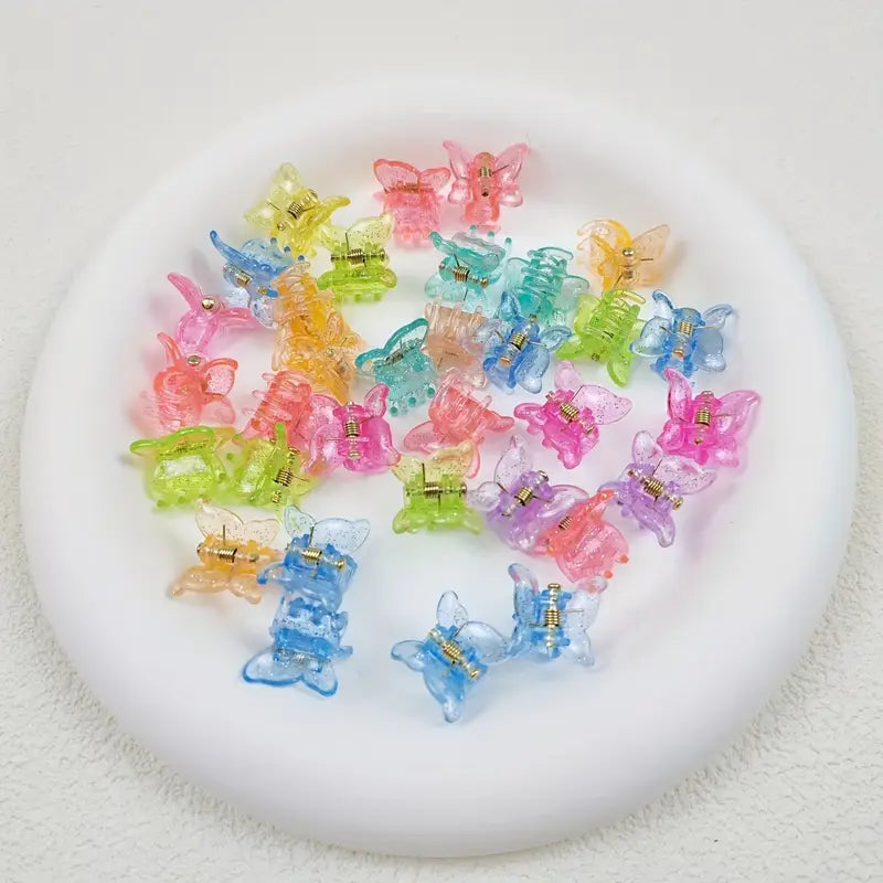 Pinces à cheveux papillon colorées - Mignons mini-accessoires pour cheveux en PVC dans des couleurs vives (rose, jaune, vert, bleu, violet) avec des motifs floraux et de papillons pour les adolescents et les adultes, mignons pinces à cheveux, décor de cheveux fantaisiste, design ludique
