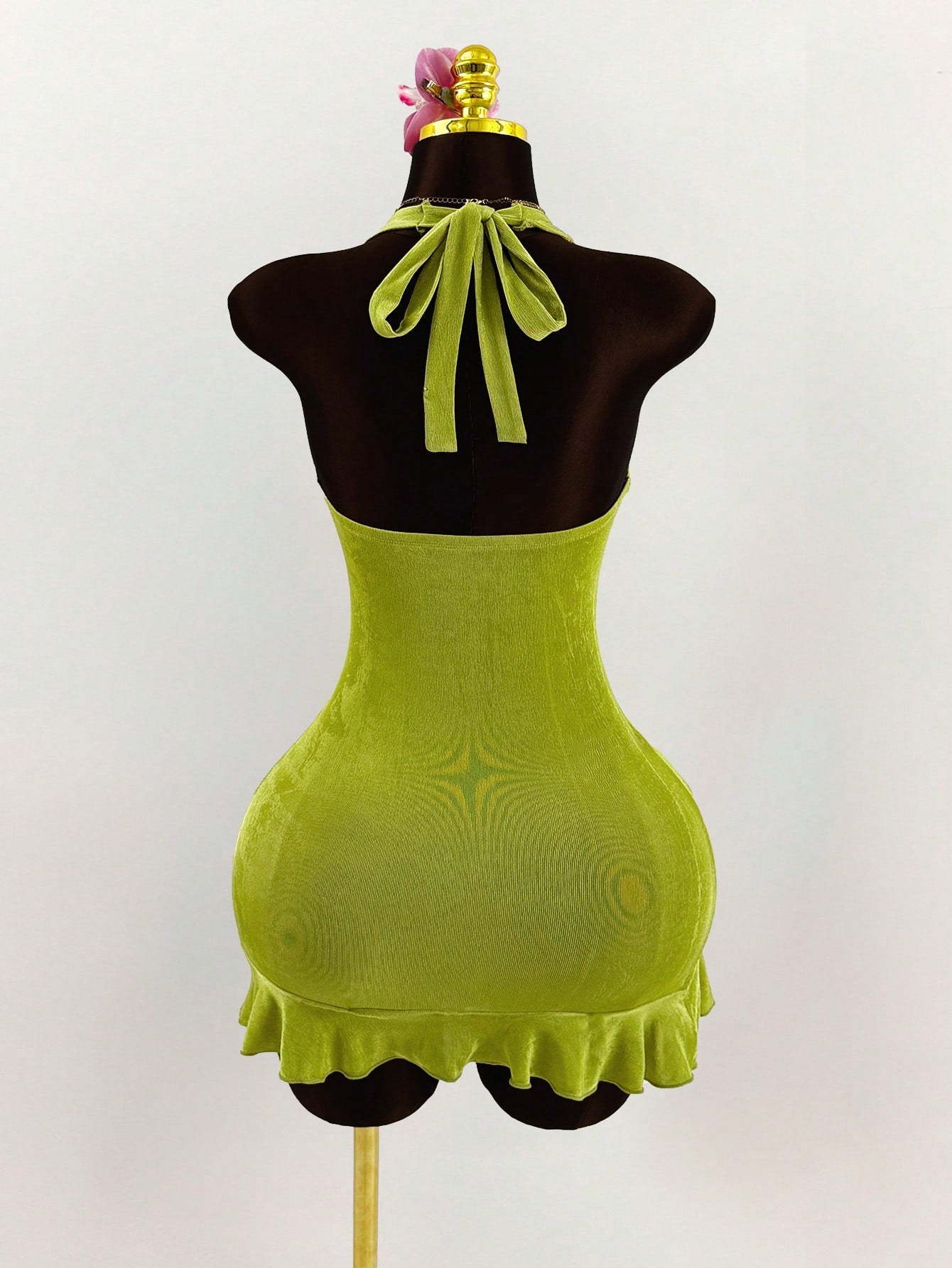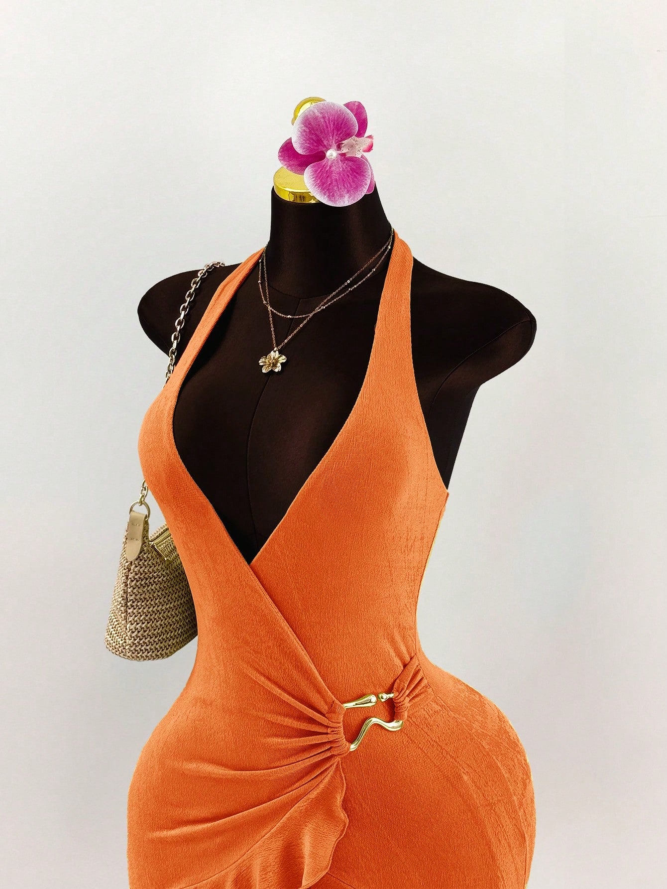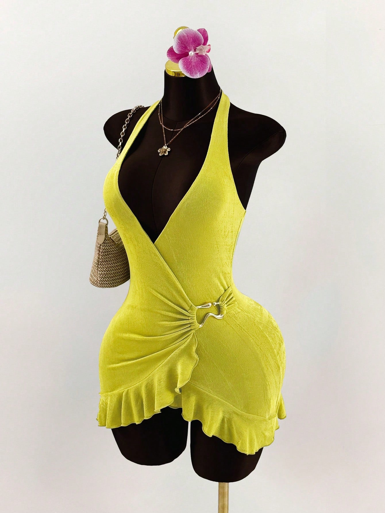 Robe moulante Amplova à décolleté en V profond et ourlet à volants en métal, style bohème pour femme