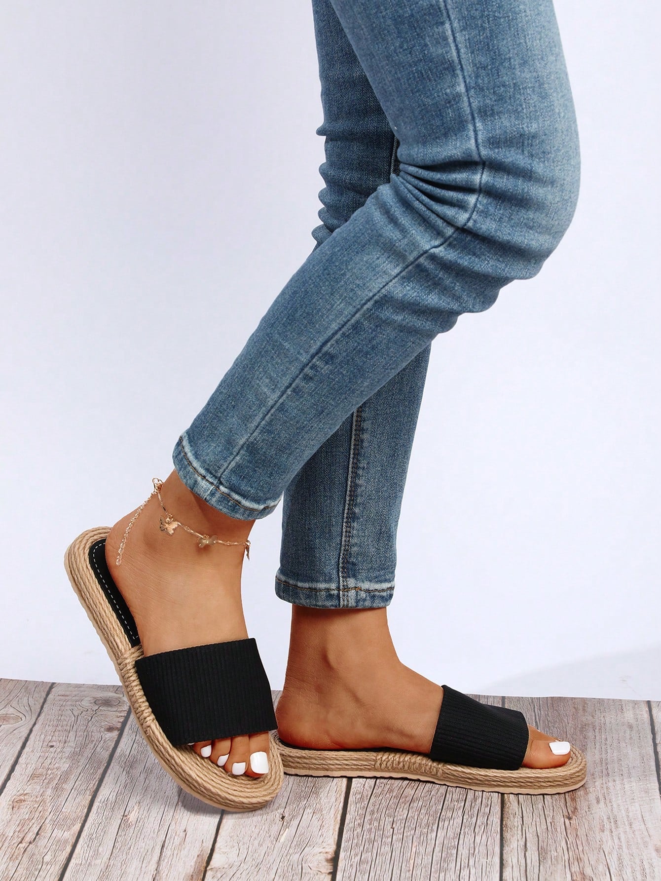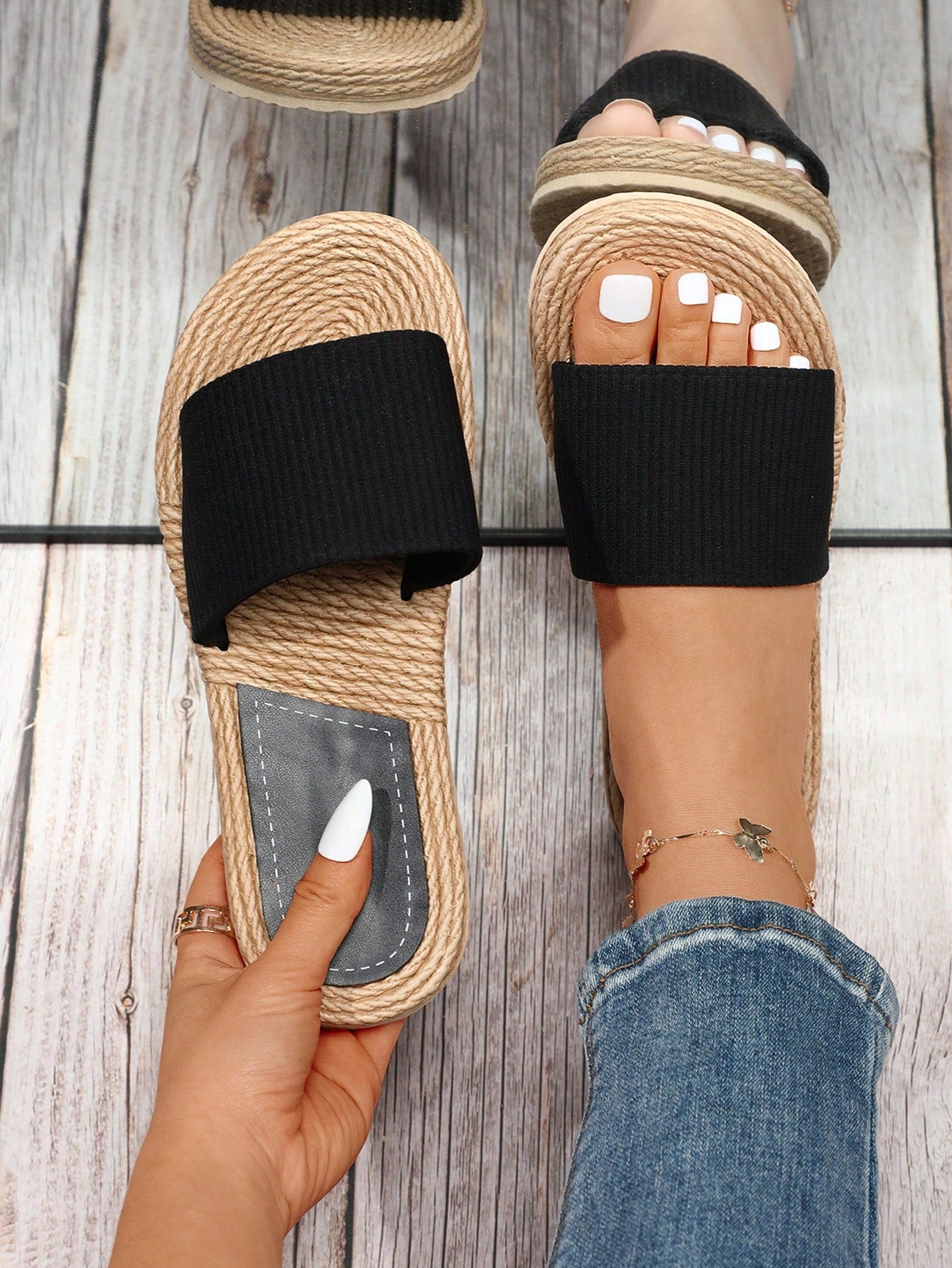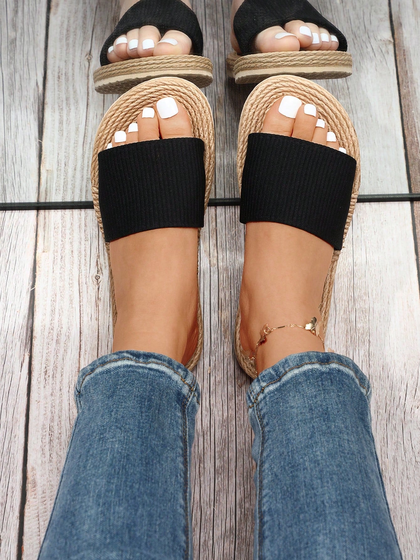 Sandales plates à bout ouvert pour femmes, minimalistes et à brides côtelées, idéales pour la Saint-Valentin