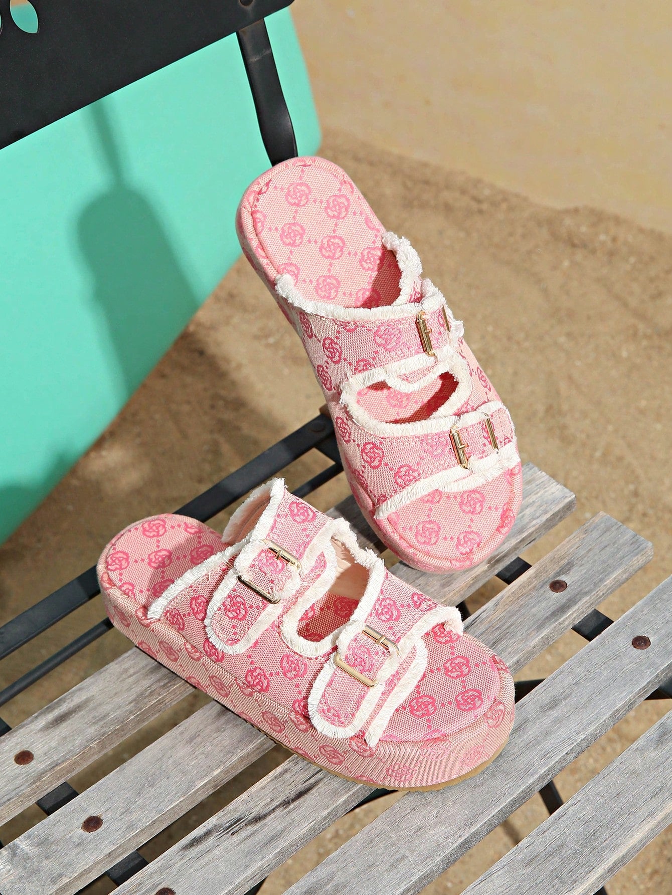 Sandales de plage polyvalentes pour femmes, à bout rond, semelle épaisse, couleur bonbon tendance, bout ouvert et talon compensé.