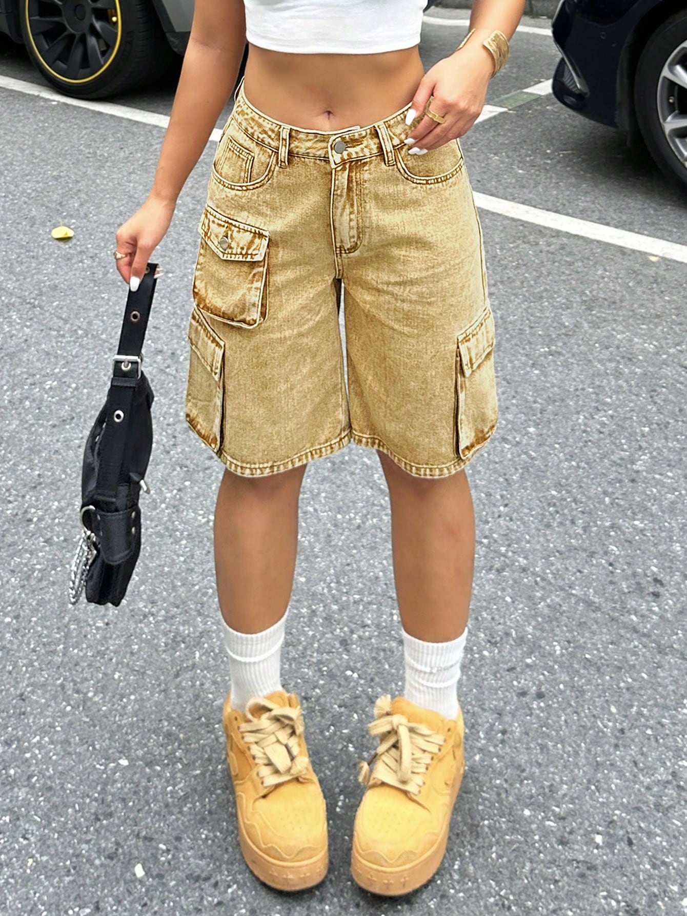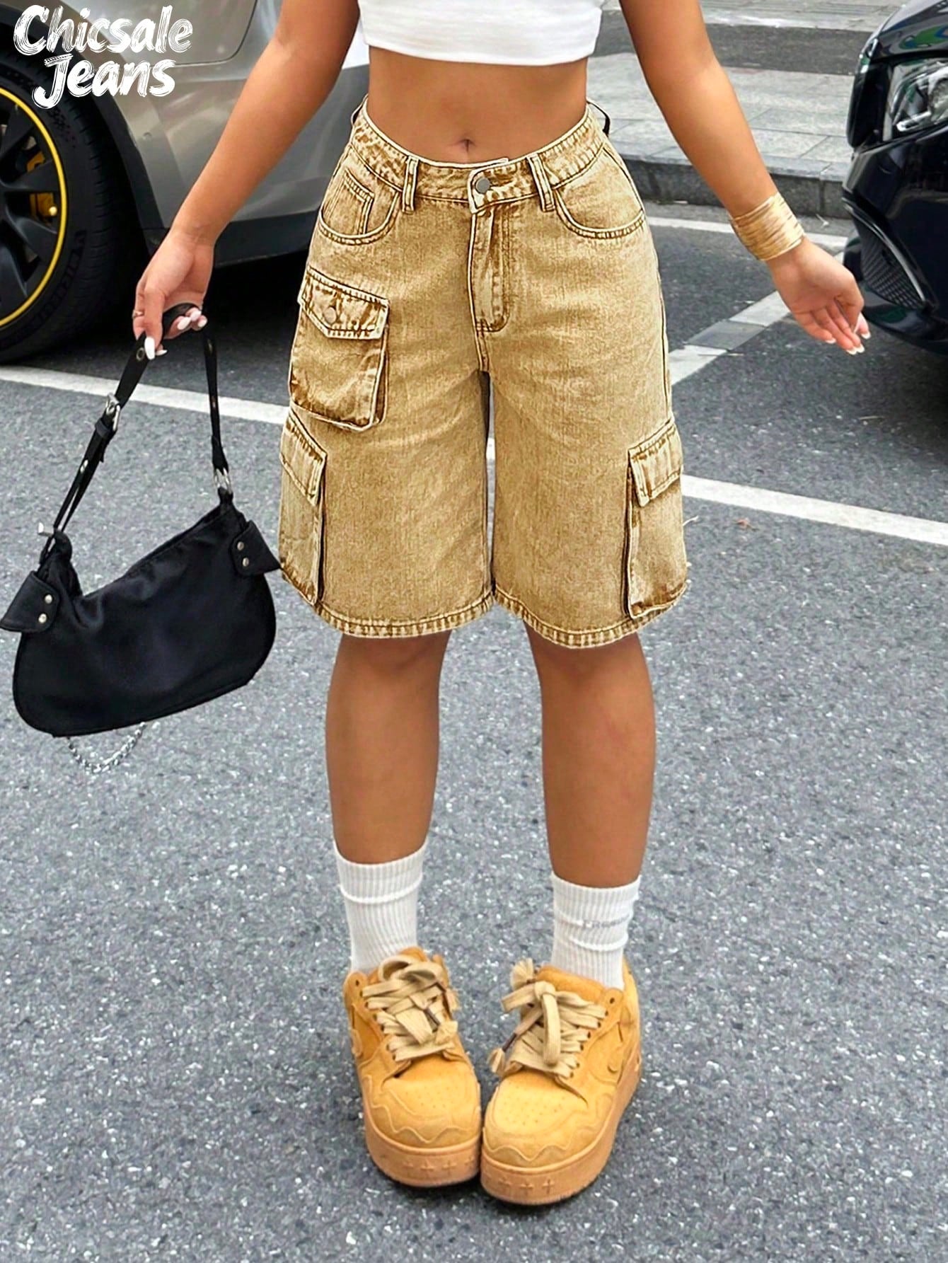 Short en jean délavé décontracté pour femme