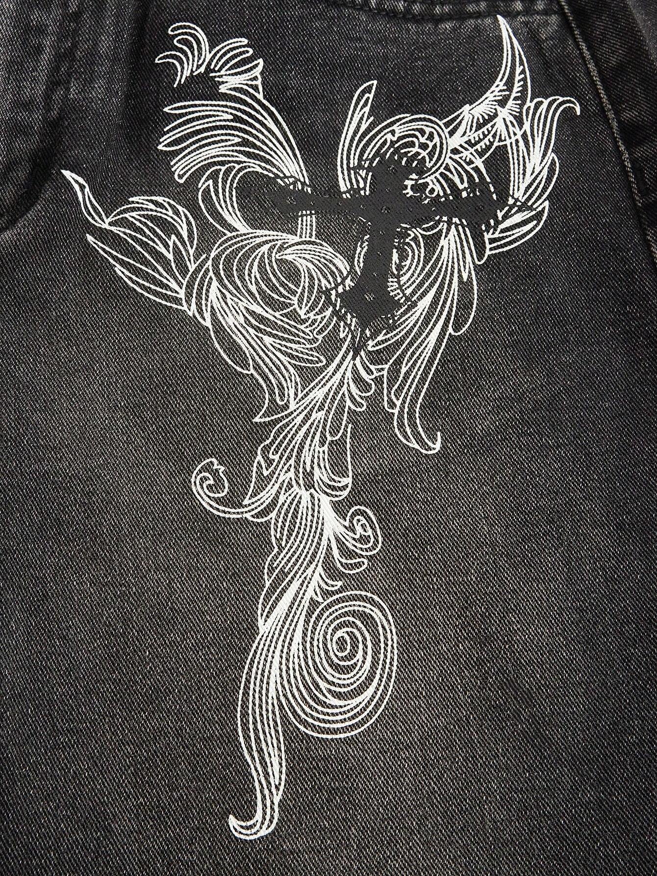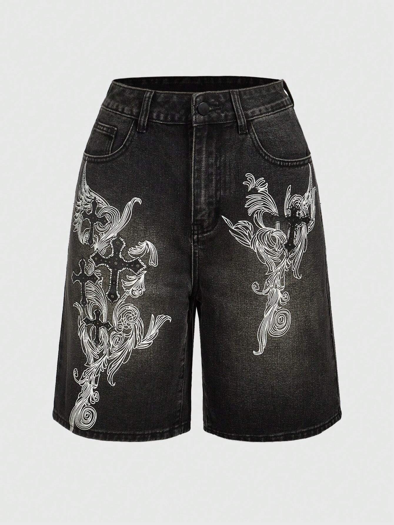 Short en jean ROMWE Grunge Punk pour femme, imprimé croix