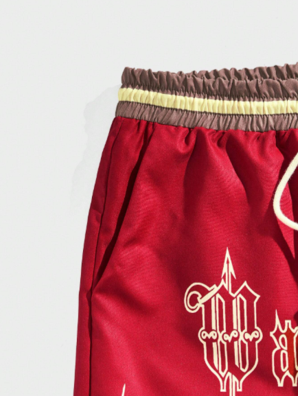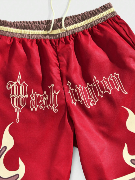 Street Life Men's Letter And Flame Printed Drawstring Waist Basketball Shorts, School