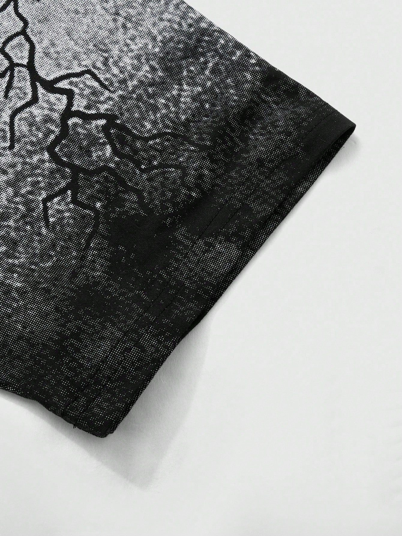 Grunge Punk Men's Street American Design Gradient Effect Print T-Shirt, Batwing Sleeve Short Sleeve, Halloween