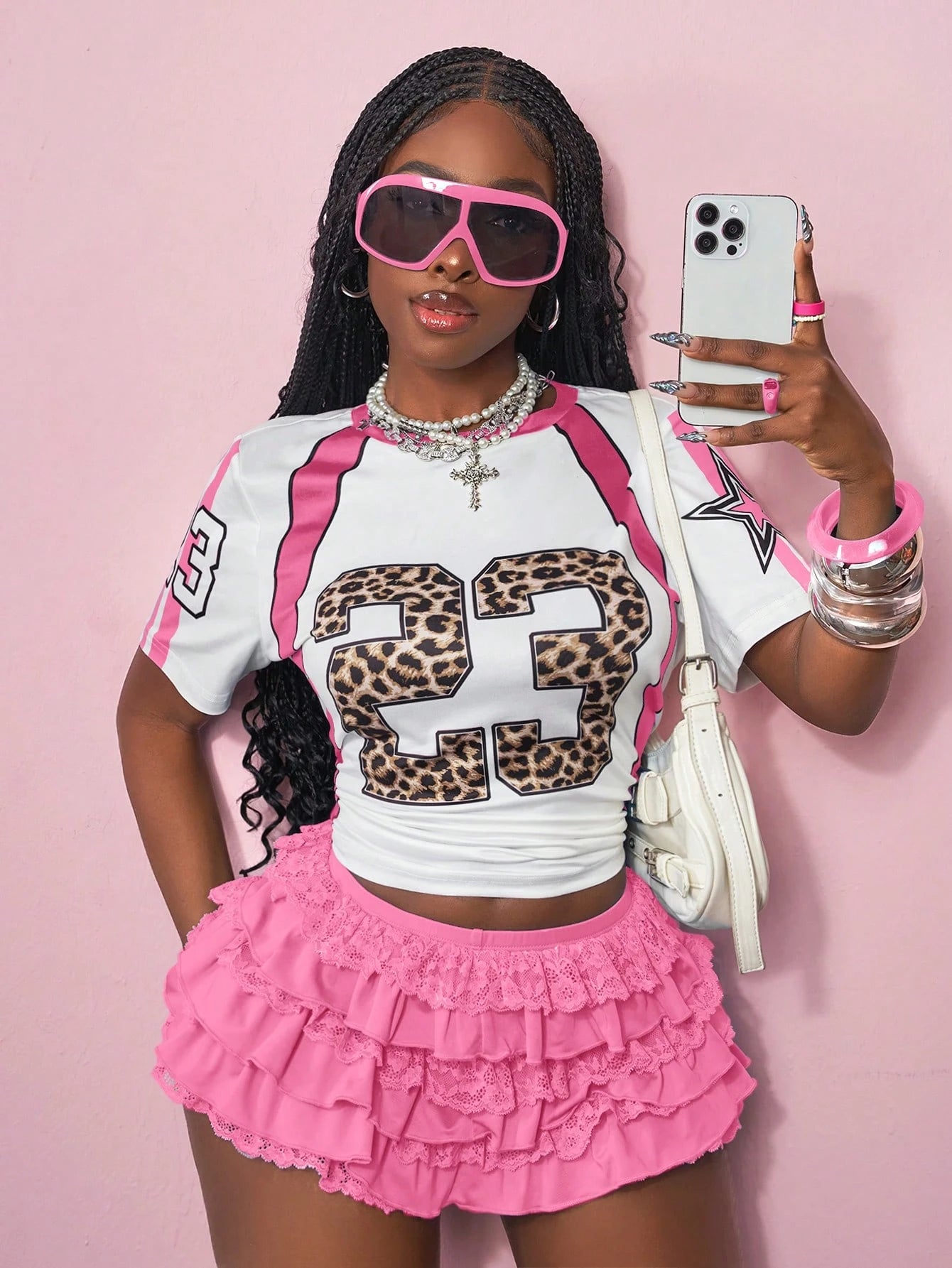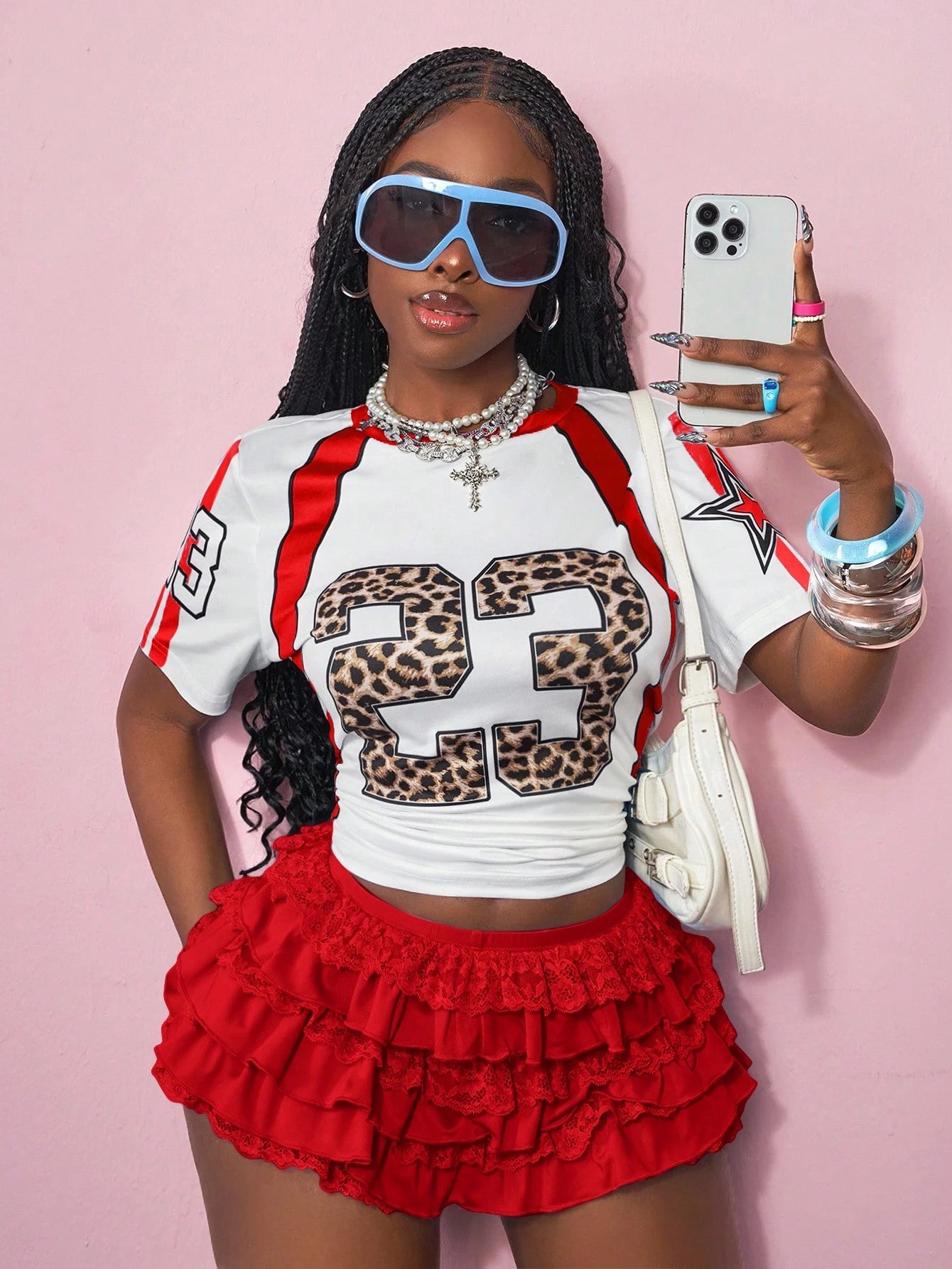 T-shirt graphique Slaydiva pour femme, streetwear, décontracté, printemps et été, motif abricot, rayures vertes, slogan, lettre d'amour, imprimé