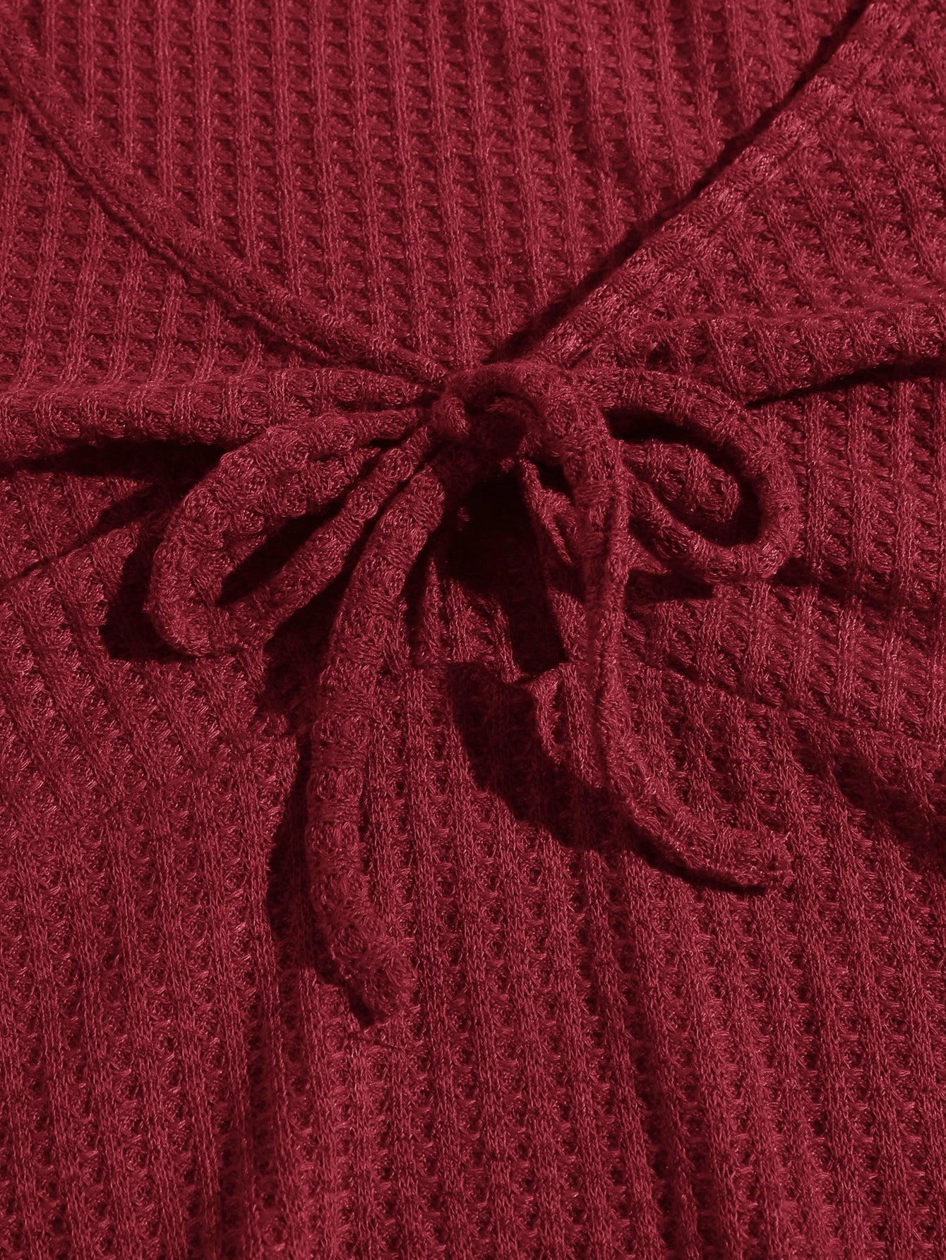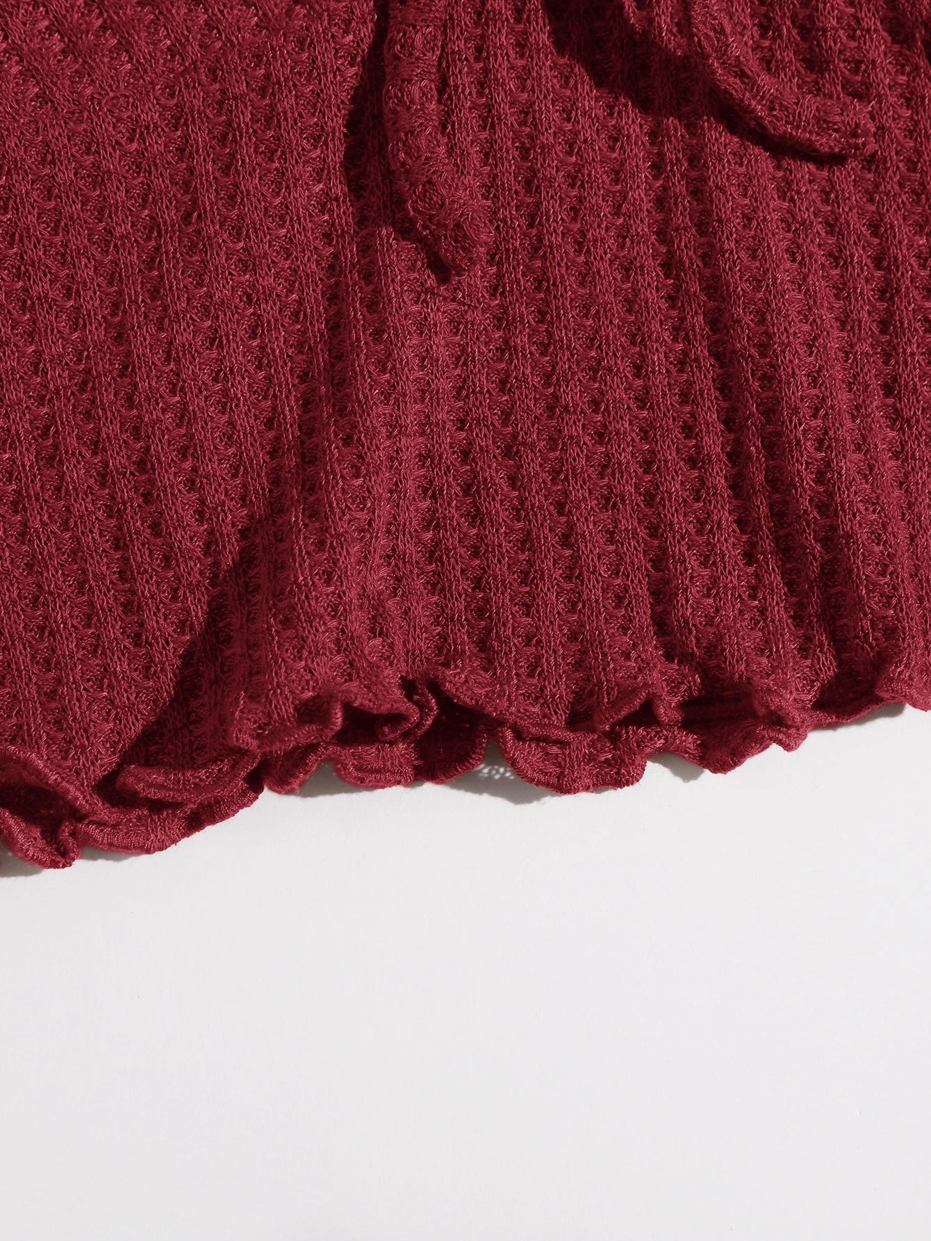T-shirt à bordure en laitue et nœud sur le devant, en maille gaufrée