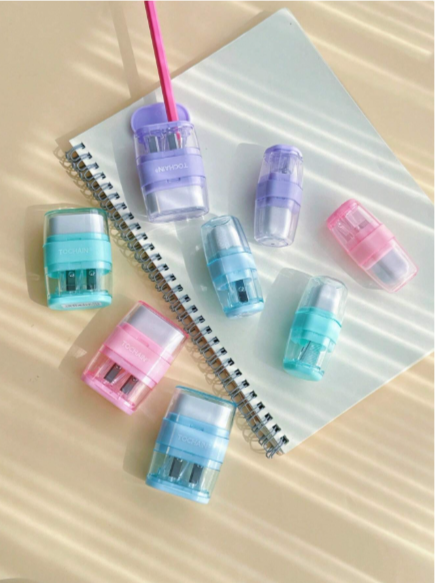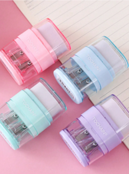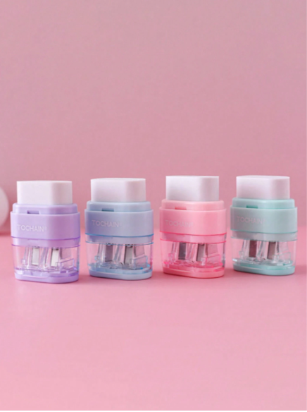 TOCHAIN 1/2/4 pièces Taille-crayon et gomme 2 en 1, papeterie créative de couleur aléatoire, fournitures pour étudiants, taille-crayon portable compact à un ou deux trous, cadeau fantaisie pour étudiants, fournitures scolaires, rentrée scolaire, cadeaux de vacances, fournitures de bureau