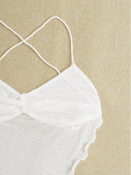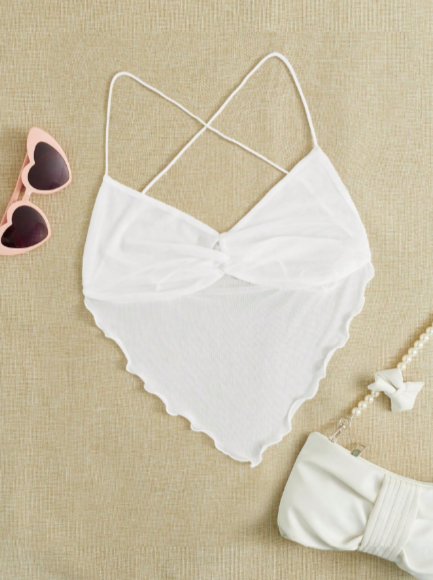 Ruched Bust Lettuce Trim Hanky Hem Cami Top