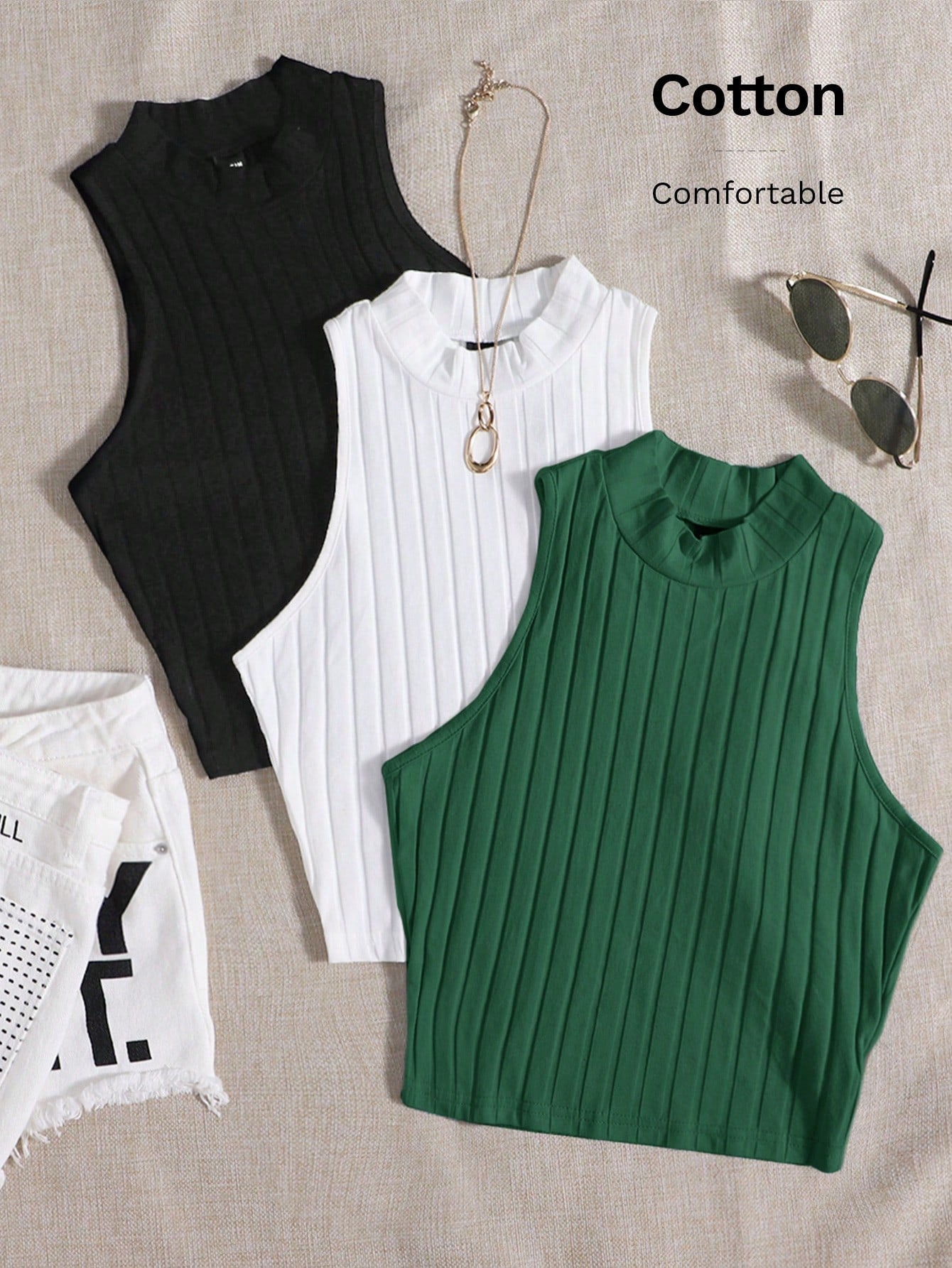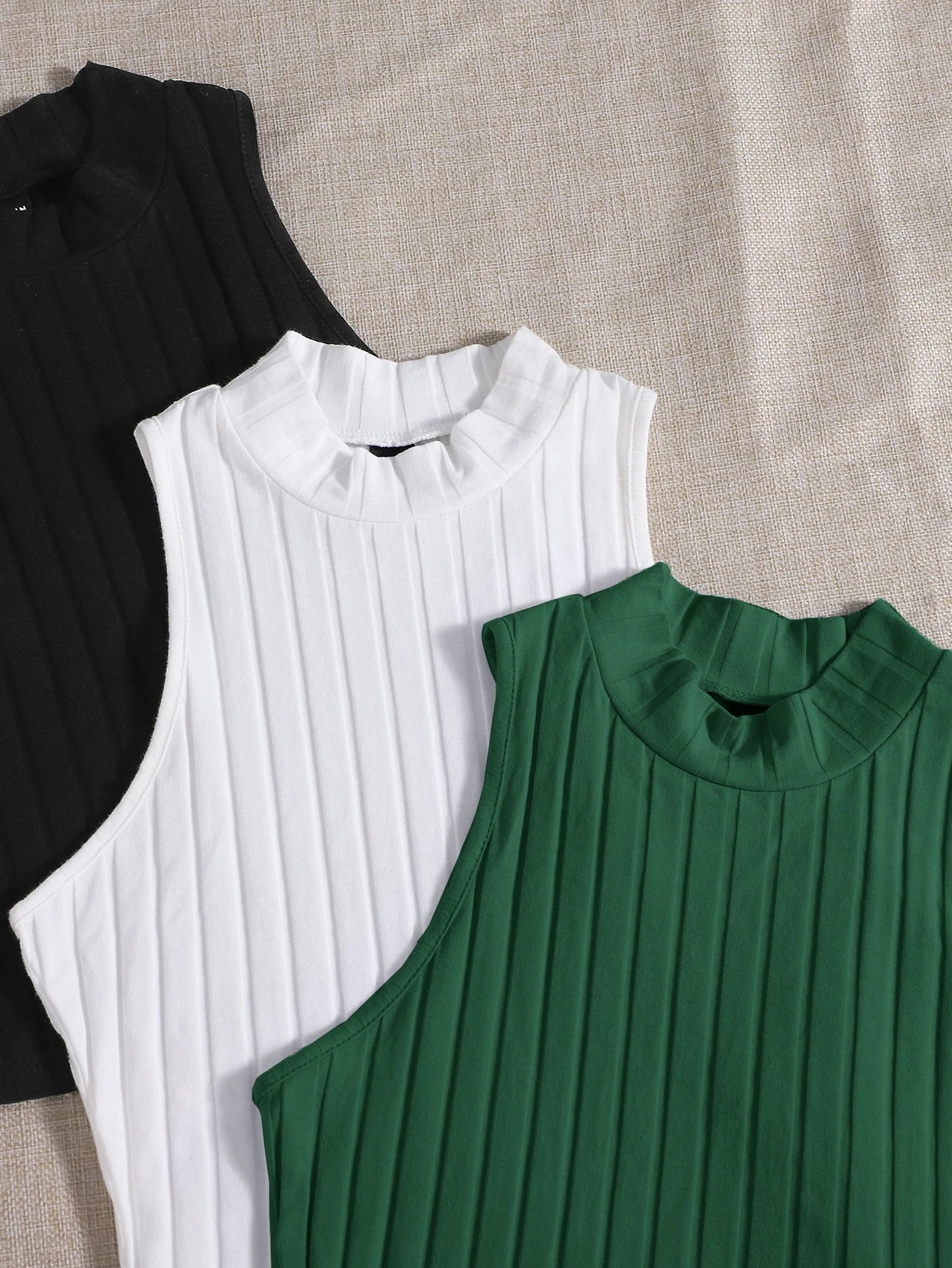 3 Packs Mock Neck Rib-Knit Summer Outfits Tank Top