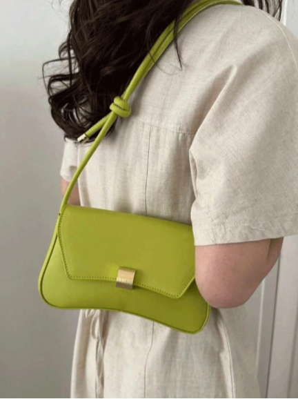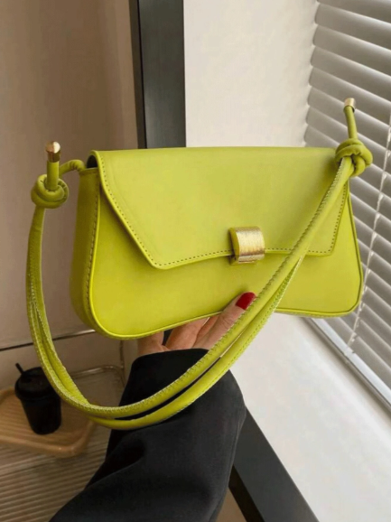 Sac à main tendance pour femme, sac à tricoter, design personnalisé avec boucle en métal, sac bandoulière, sac messager haut de gamme en PU couleur unie, portefeuille pour femme, idéal pour le shopping, les déplacements domicile-travail et les voyages.
