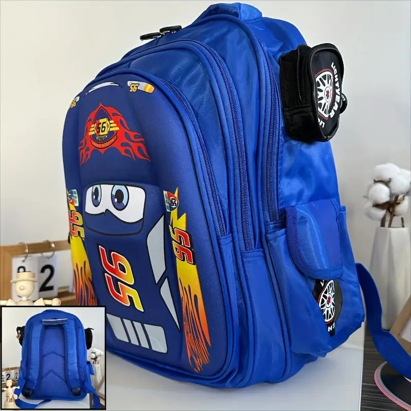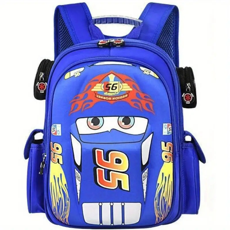 Cartable Officiel Disney Cars - Sac à Dos Léger Lightning McQueen avec Bandoulière Réglable, Organisateur Multi-Compartiments et Fermeture Éclair - Design Course Bleu & Rouge, Durable pour Enfants, Cadeaux d'Anniversaire (Marque Disney Pixar Cars)